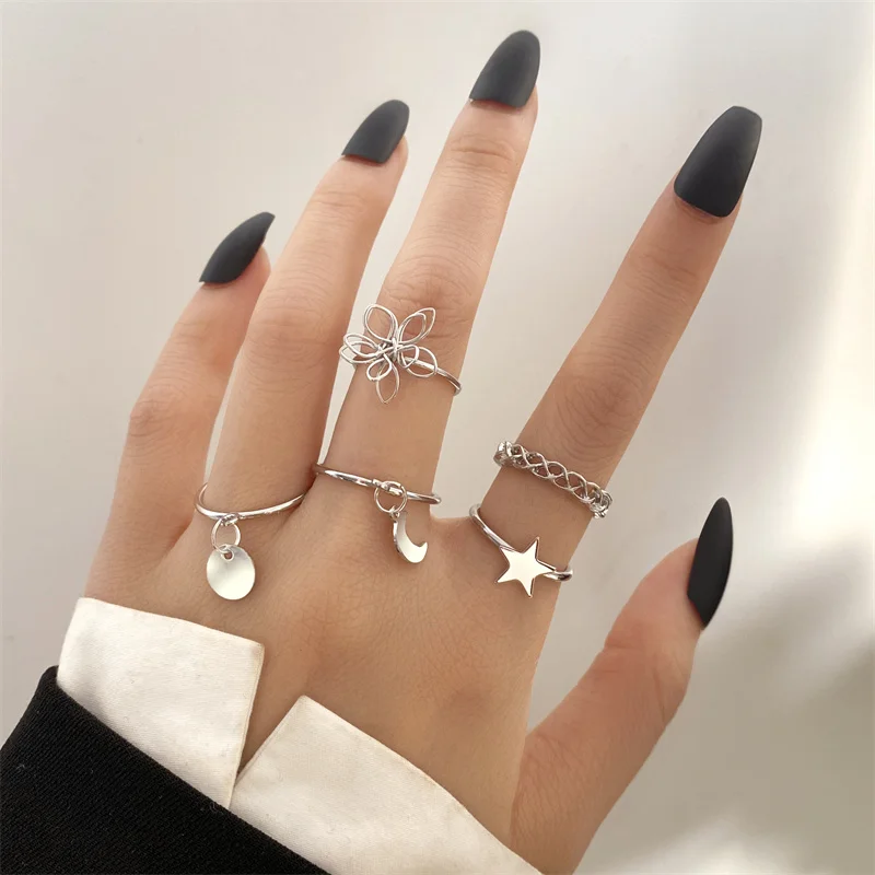 Набор металлических колец в богемном стиле, модные кольца из полиме...