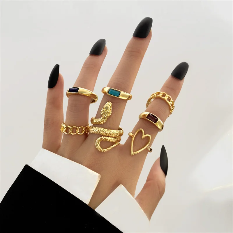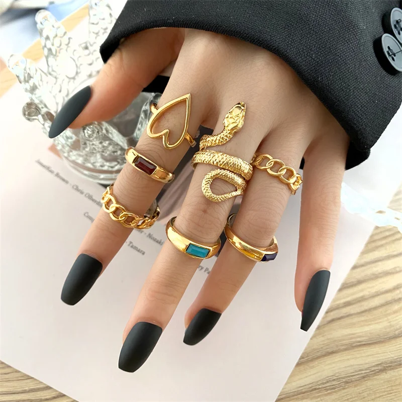 Набор металлических колец в стиле панк-змеи, серебряные и золотые к...
