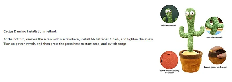 Эта танцевальная игрушка в форме растения С КАКТУСОМ на батарейках может танцевать с ритмом, пойте 3 веселые песни, подарив вашему ребенку счастливое время в жизни.