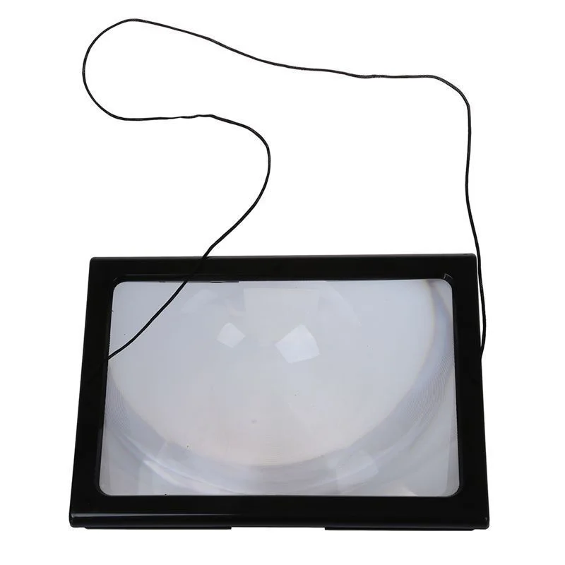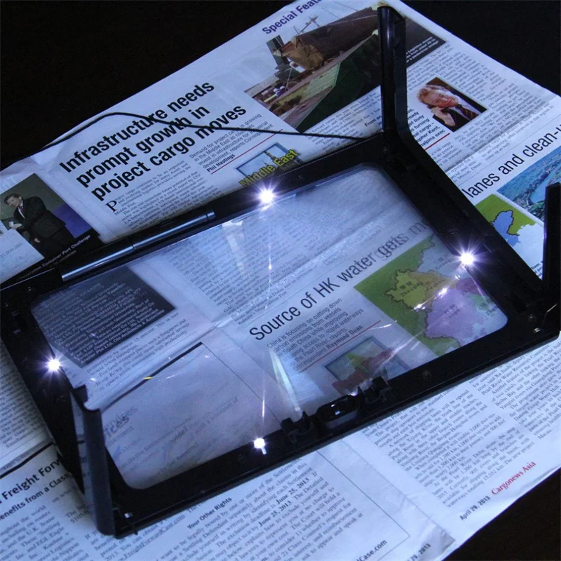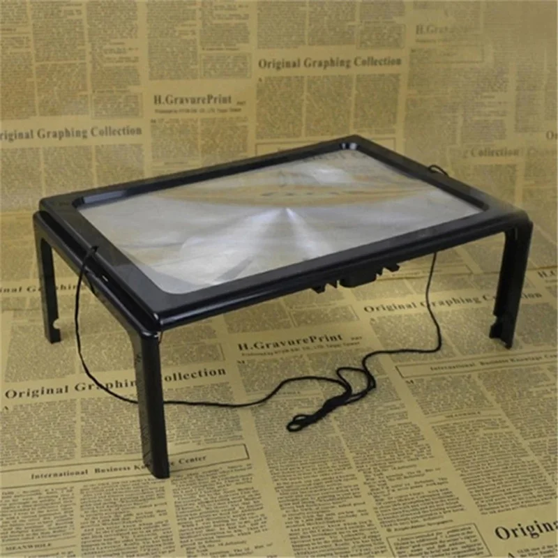 Портативная настольная Лупа A4, плоская прямоугольная лупа из ПВХ, увеличительное стекло с 3-кратным увеличением, складное увеличительное стекло для чтения со светодиодом