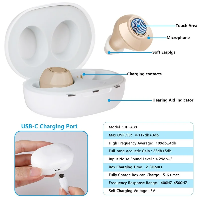 Характеристики: Совершенно новый, высококачественный Перезаряжаемый USB, прочный и надежный в течение длительного времени новый дизайн usemini для портативности, более удобный. Анти-шок и анти-падение, удобный дизайн вес менее 10 г, светильник вес. Отрегулируйте громкость в соответствии с Вашими пожеланиями. Небольшой рабочий ток и длительный срок использования точный и простой в использовании. Уменьшает noice, обеспечивает хорошее качество звука. Поможет вам четко и громко слышать звук, будь то в помещении или на открытом воздухе