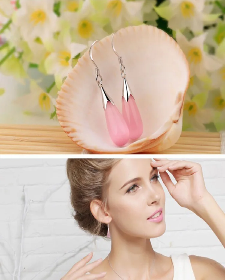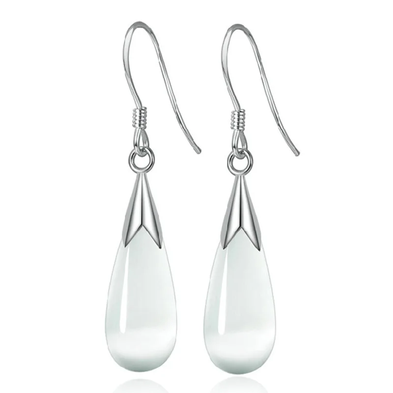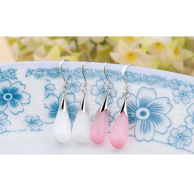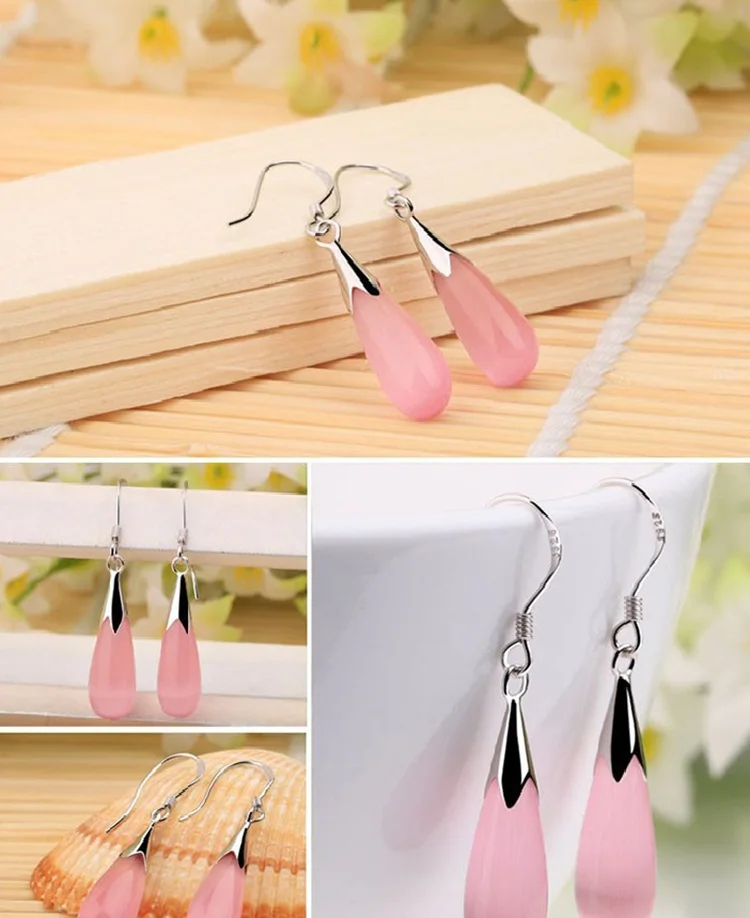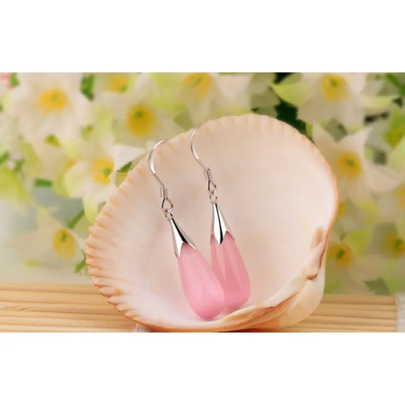 2022 новые модные серьги Wihite с розовым опалом, дизайнерские серьги-капли для женщин, простой стиль, длинные серьги-подвески с крючком, ювелирные изделия