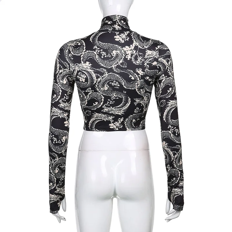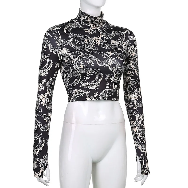 Женская облегающая футболка с длинным рукавом и высоким воротником