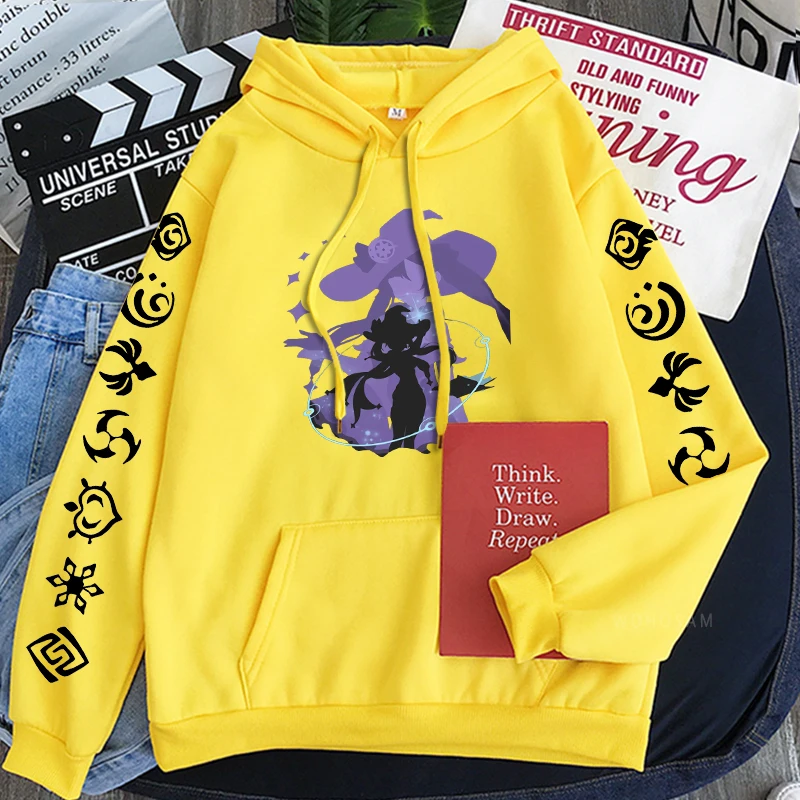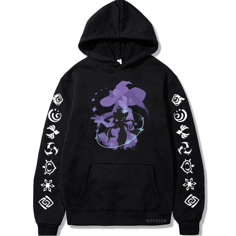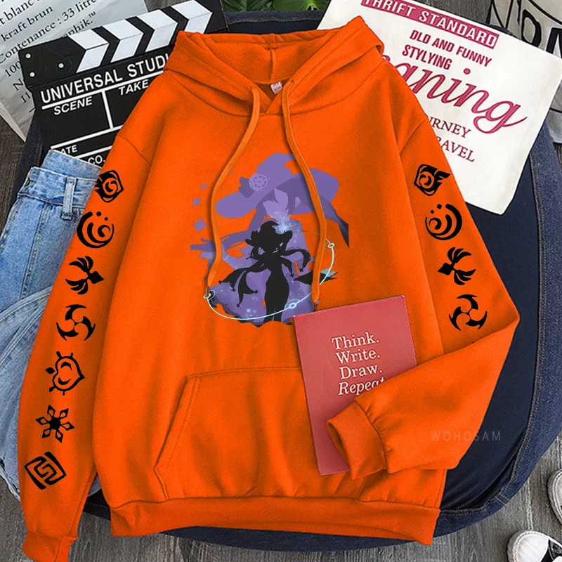 Кавайный астостерон Мона маггист геншин искусственная кожа длинный рукав Harajuku Мужская Уличная одежда винтажный мультяшный Женский свитшот