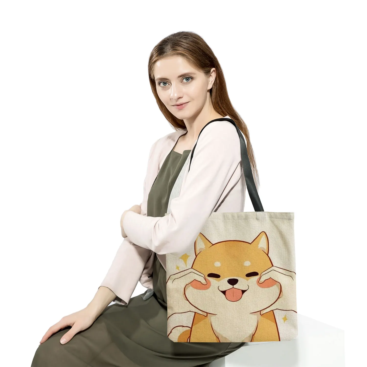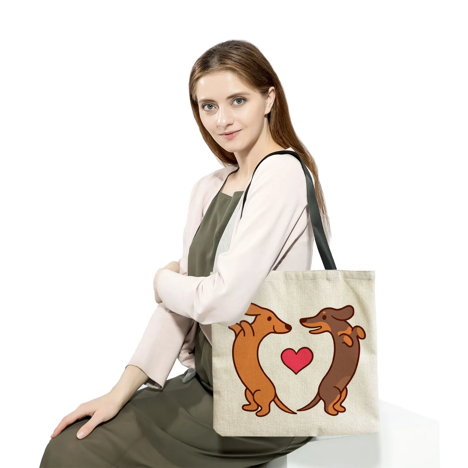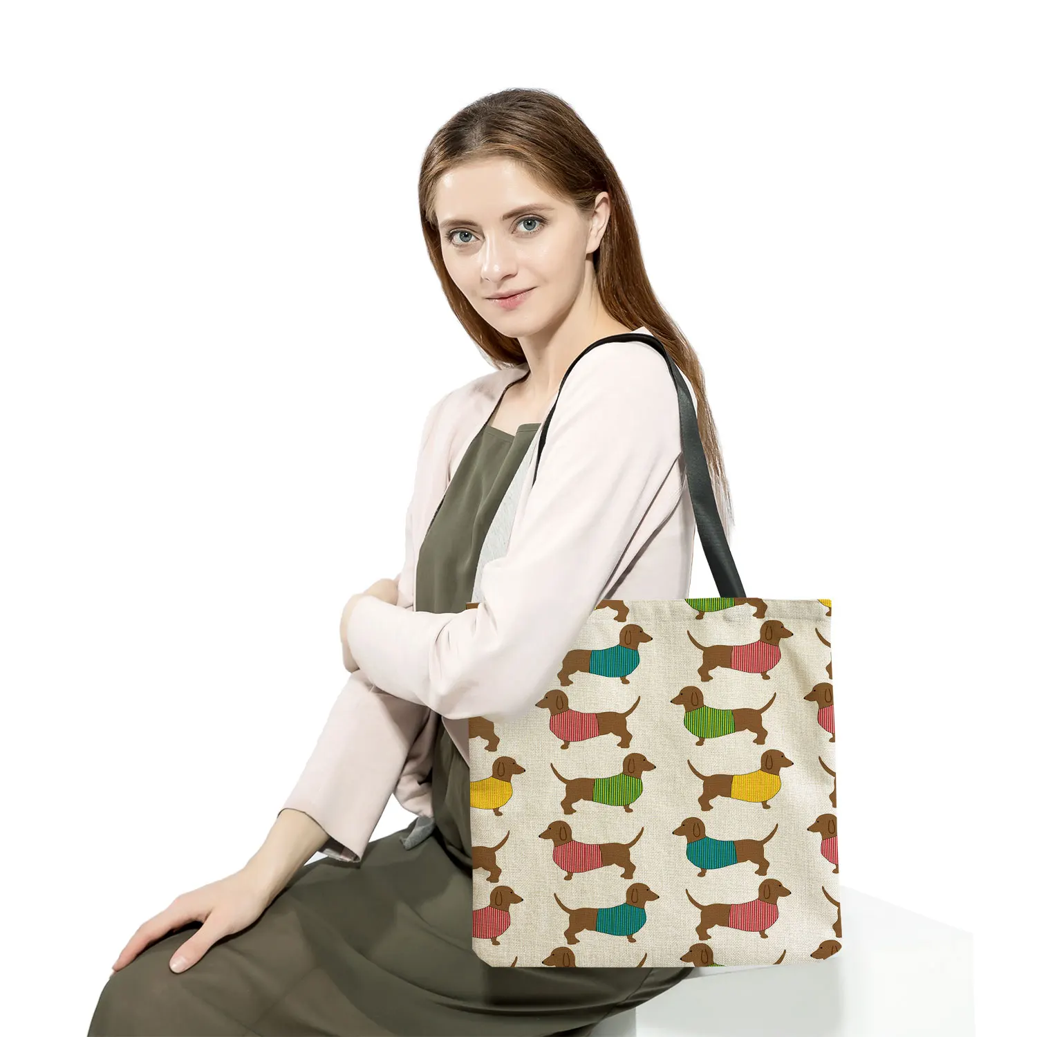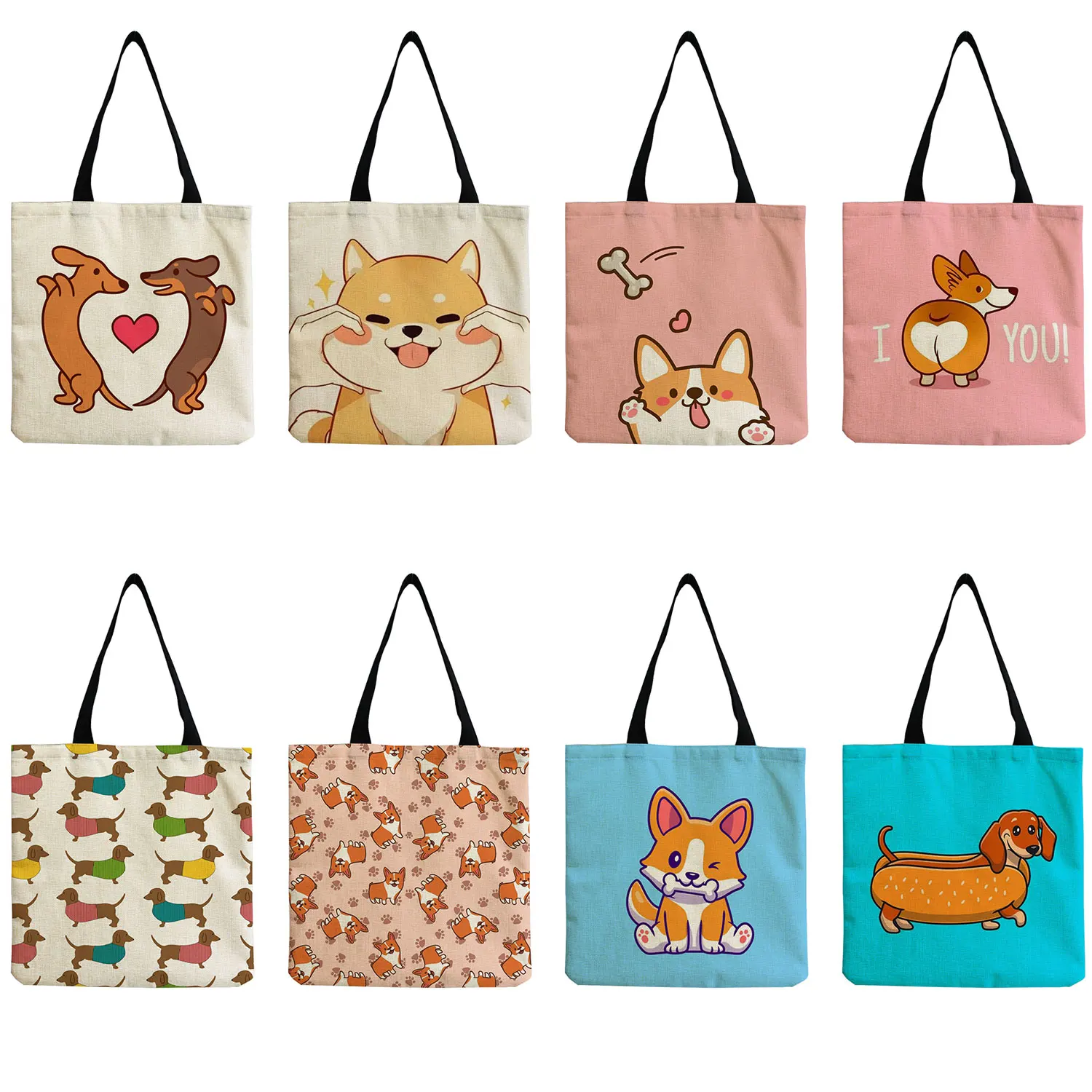 Индивидуальная Повседневная сумка для покупок, вместительная многоразовая Сумочка с принтом милой собаки, Женский тоут, мультяшная корги, таксы, Наплечные сумки