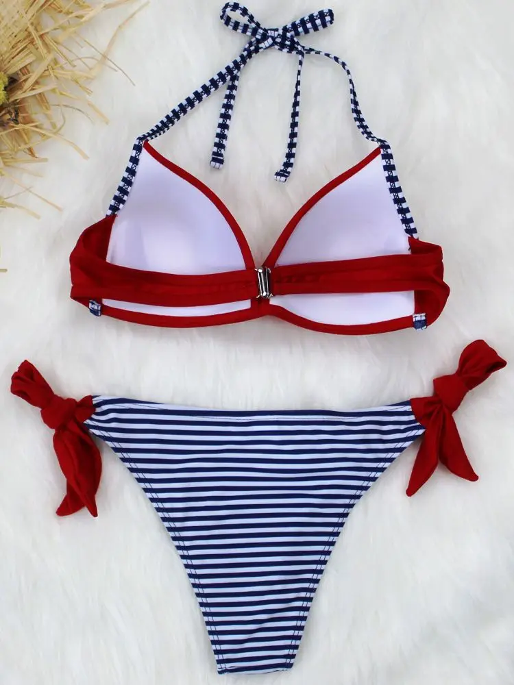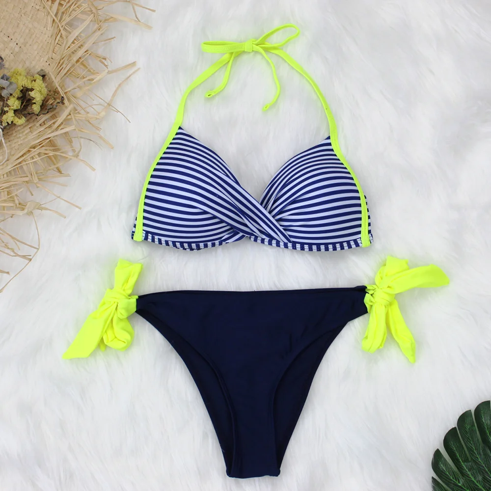 2022, полосатые бикини, сексуальные женские купальники, купальник с боковой завязкой, бразильский бандажный комплект бикини, летний пляжный купальник, две штуки