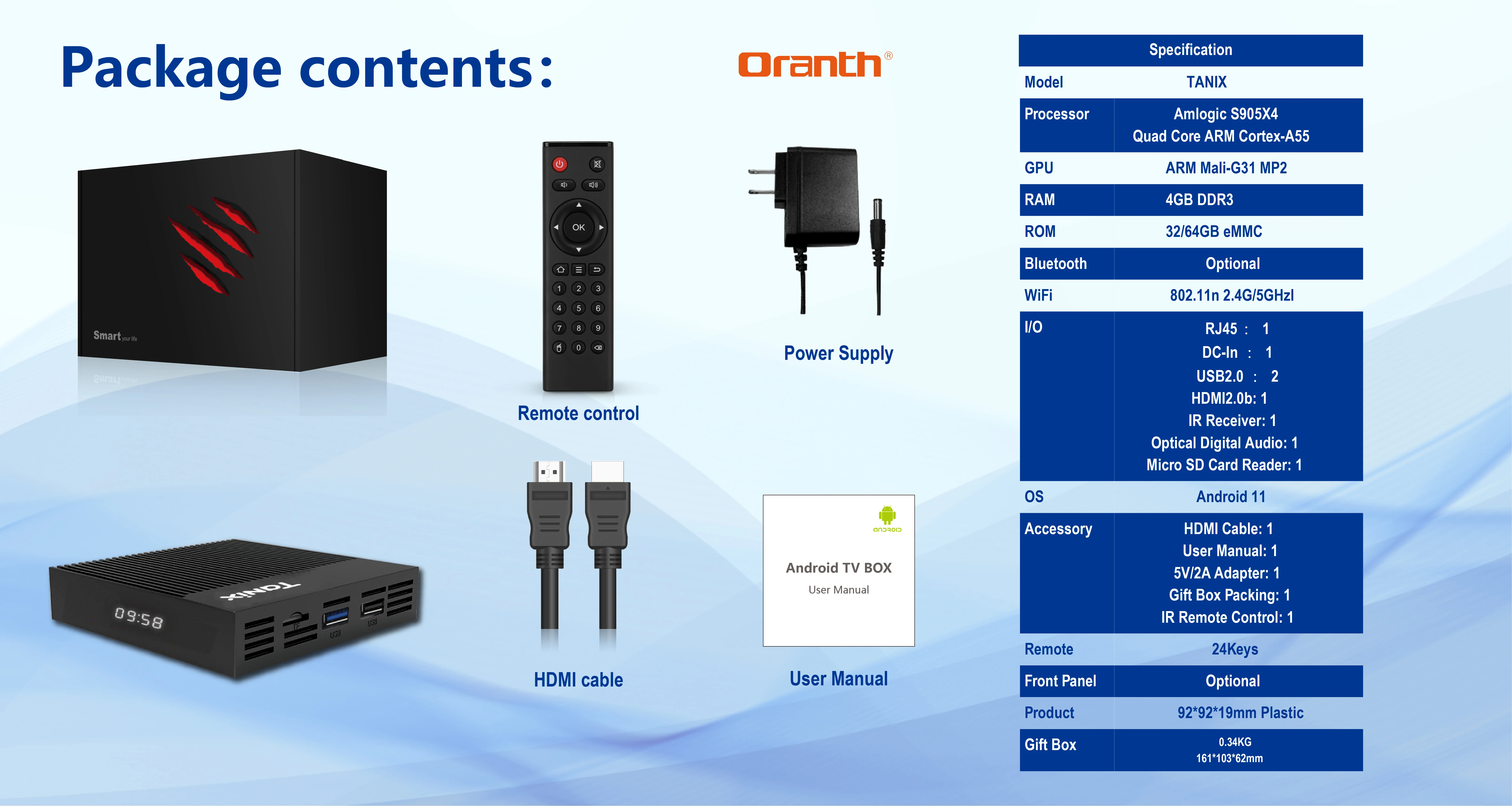 ТВ-устройство Tanix X4 PRO, декодер с Android 11,0, Amlogic S905X4, 4 Гб ОЗУ, 32 ГБ64 Гб ПЗУ, Wi-Fi 2