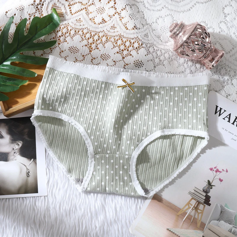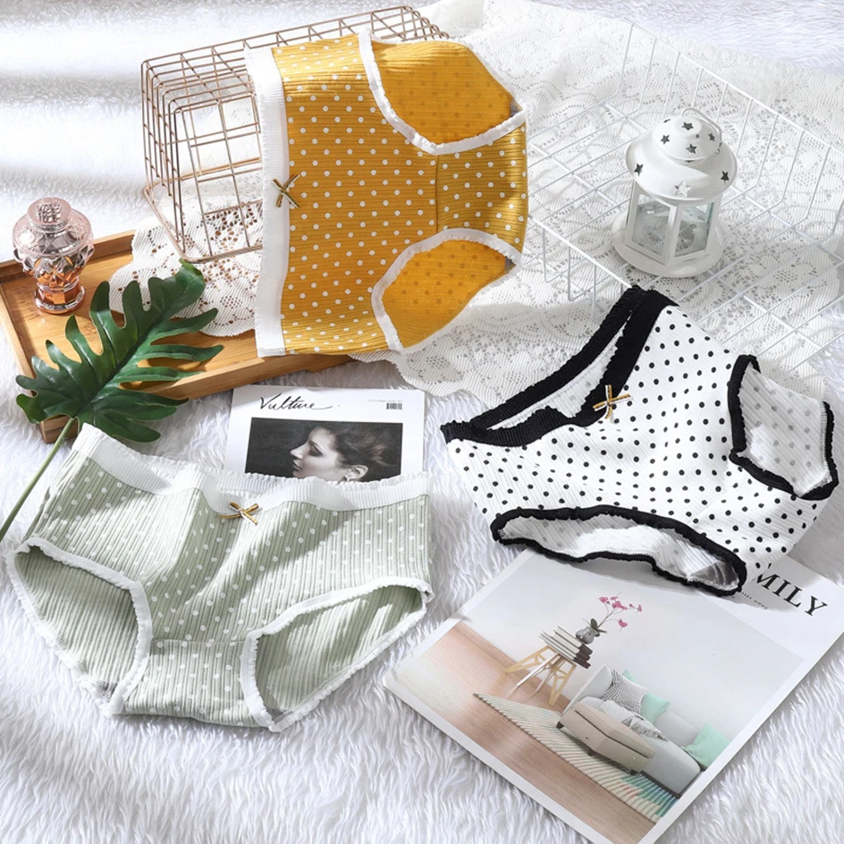Новое нижнее белье в горошек для девушек в японском стиле дышащие женские трусики с бантом и средней талией трусы из чистого хлопка эластичное нижнее белье