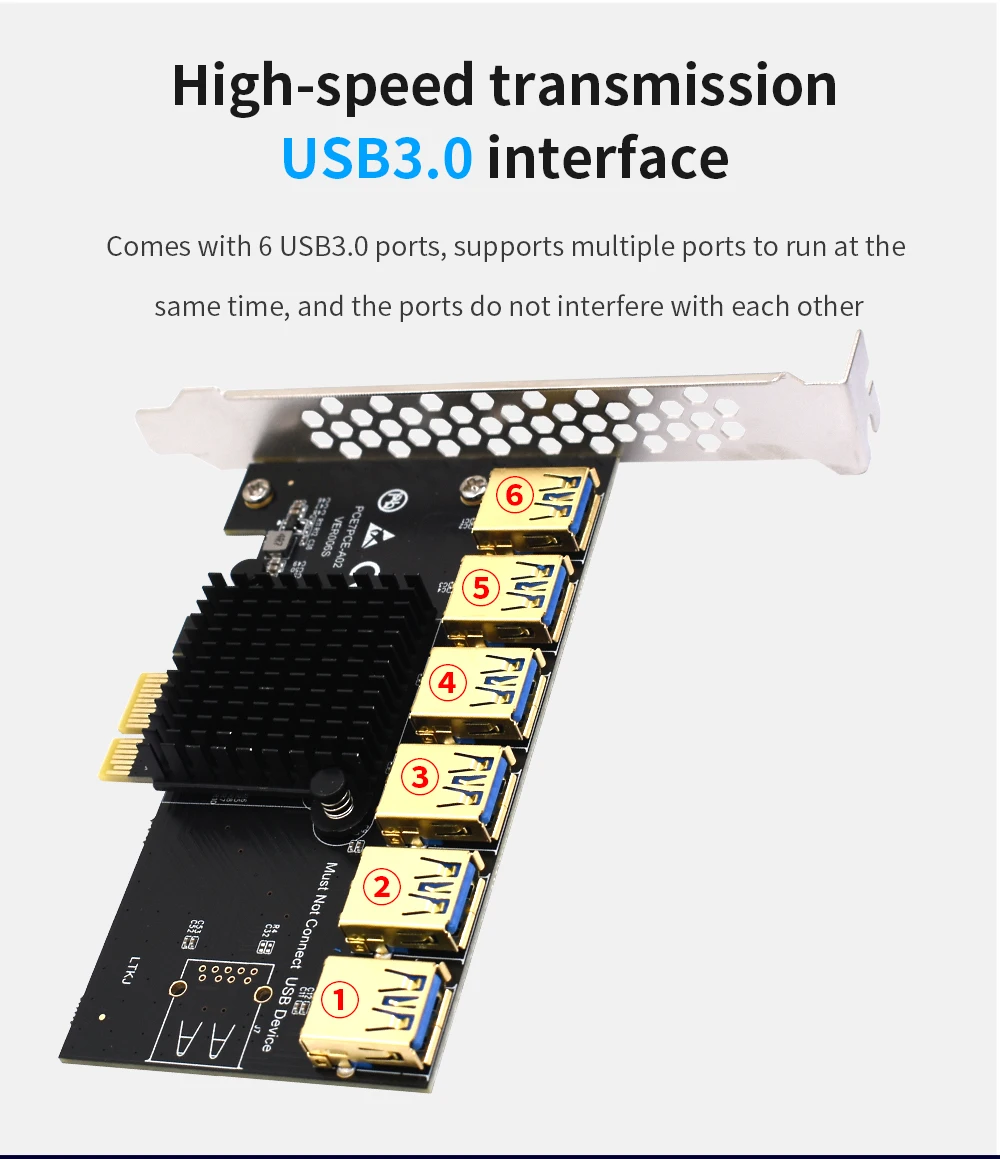 TISHRIC PCI Express множитель, от 1 до 6 портов USB 3,0 PCI-E от 1 ...