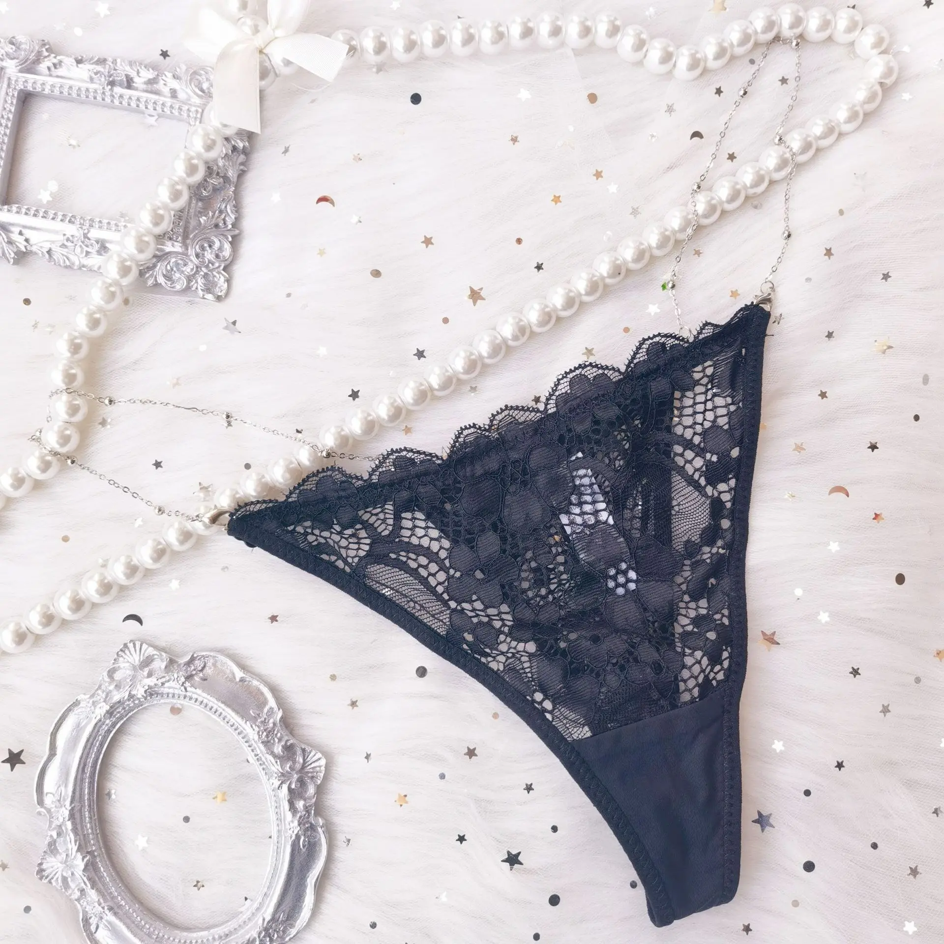 Ажурные трусики с металлической цепочкой, бикини с надписью, украшение с заниженной талией, прозрачные стринги, сексуальные трусики, женское нижнее белье