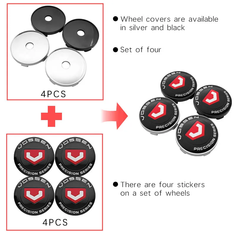 56 мм + 60 мм Автомобильный Стайлинг, серебристые, черные фотоколпачки для VOSSEN Центральная втулка колеса автомобиля Rim, Пыленепроницаемый Чехол, значок с логотипом
