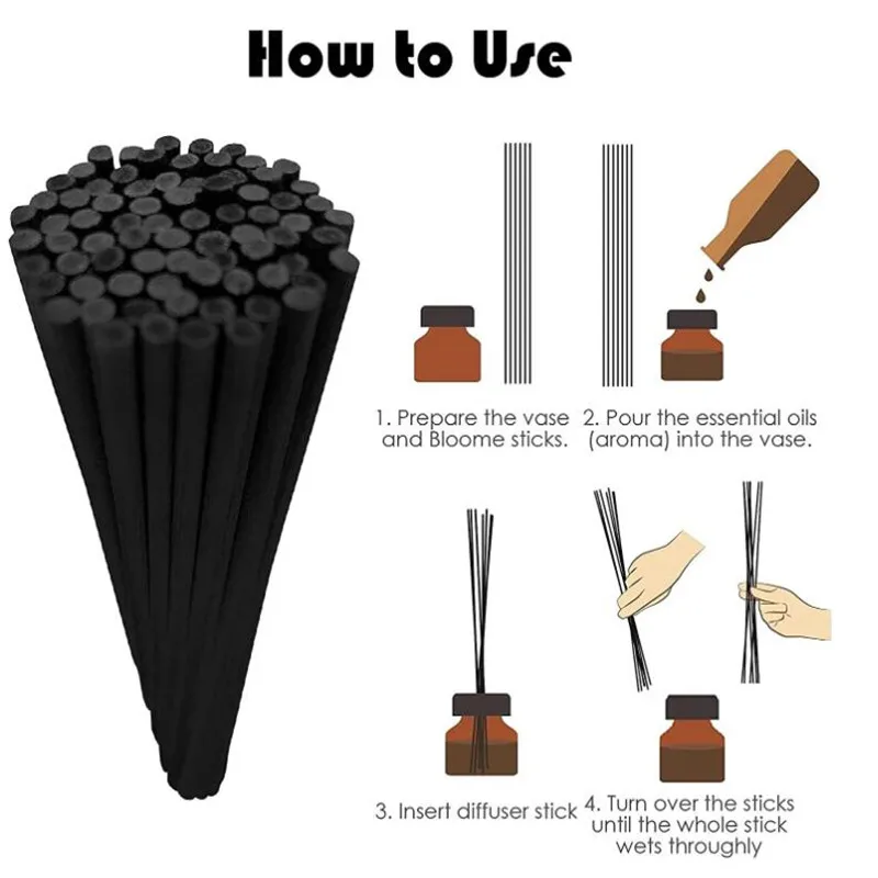 Подходящий размер-Эффективная высота диффузорных палочек будет почти в два раза выше, чем у жидкости. Если выше, вы обнаружите, что верх палочек не будет работать. Так что не чем дольше.