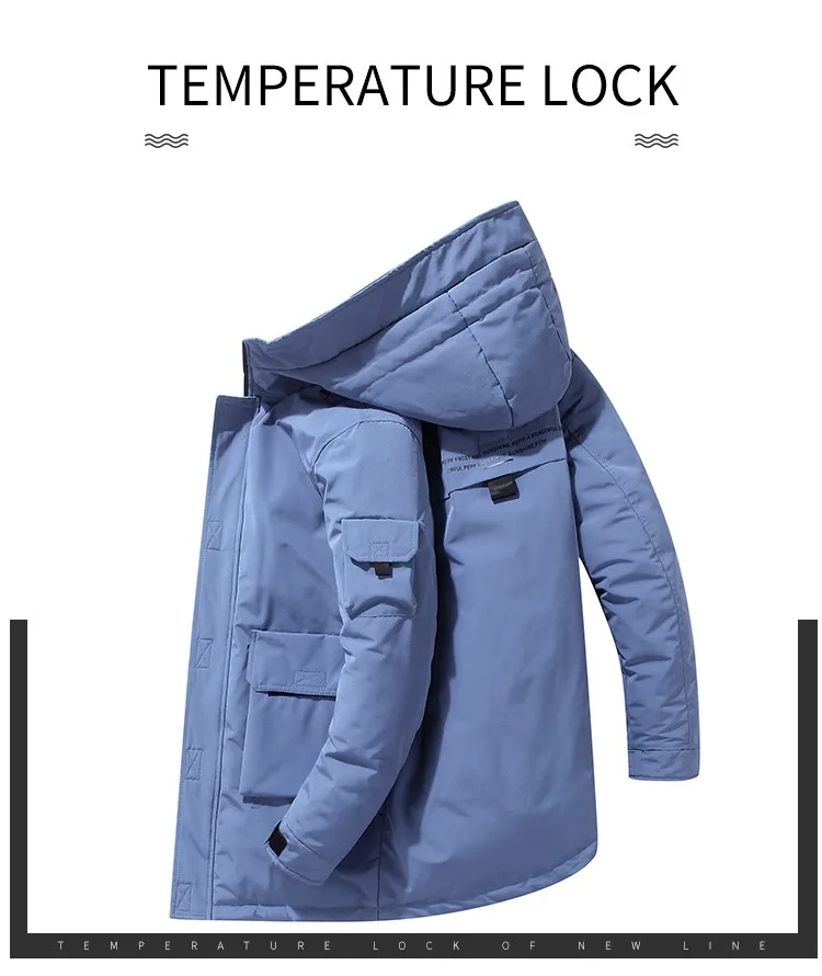 Удлиненный мужской пуховик, модная зимняя теплая Толстая парка на 2022 белом утином пуху, Мужская зимняя пуховая куртка с капюшоном, новинка 90%