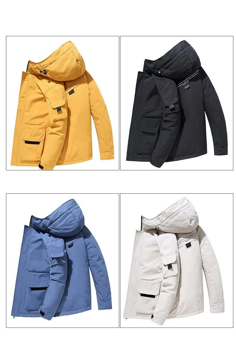 Зимняя новая модная мужская куртка с капюшоном, утепленная куртка н...