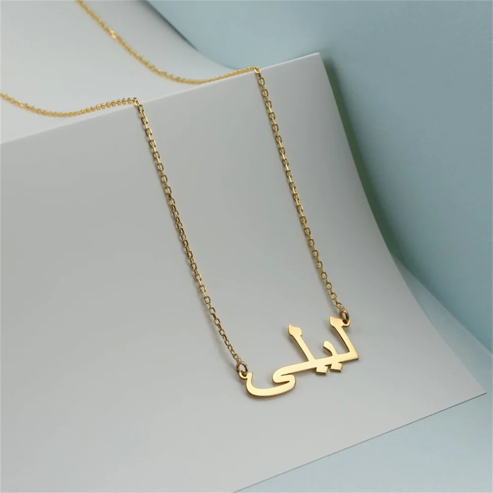 Персонализированная золотая цепочка из нержавеющей стали с шрифтом, индивидуальное ожерелье с мусульманским арабским именем, Женские Ювелирные изделия подружки невесты