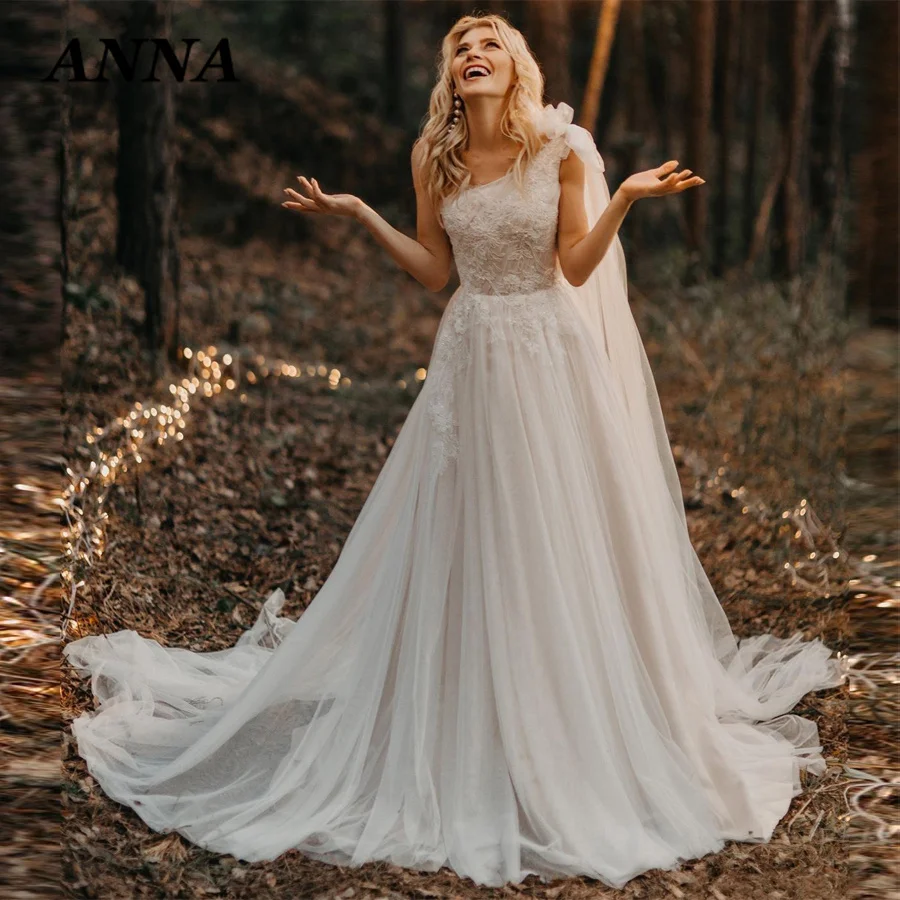 Анна красота свадебное платье 2021 элегантный o-образным вырезом Tull...US $683,00