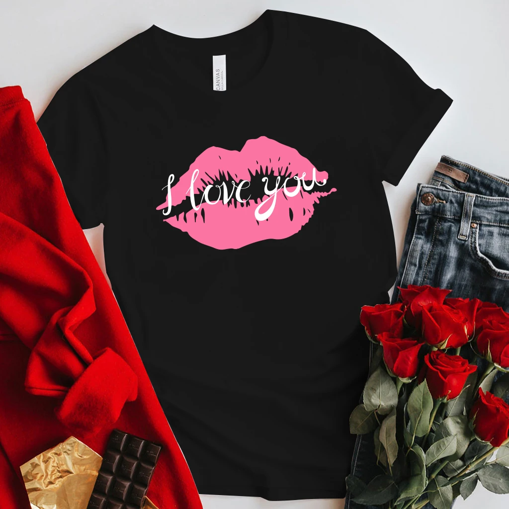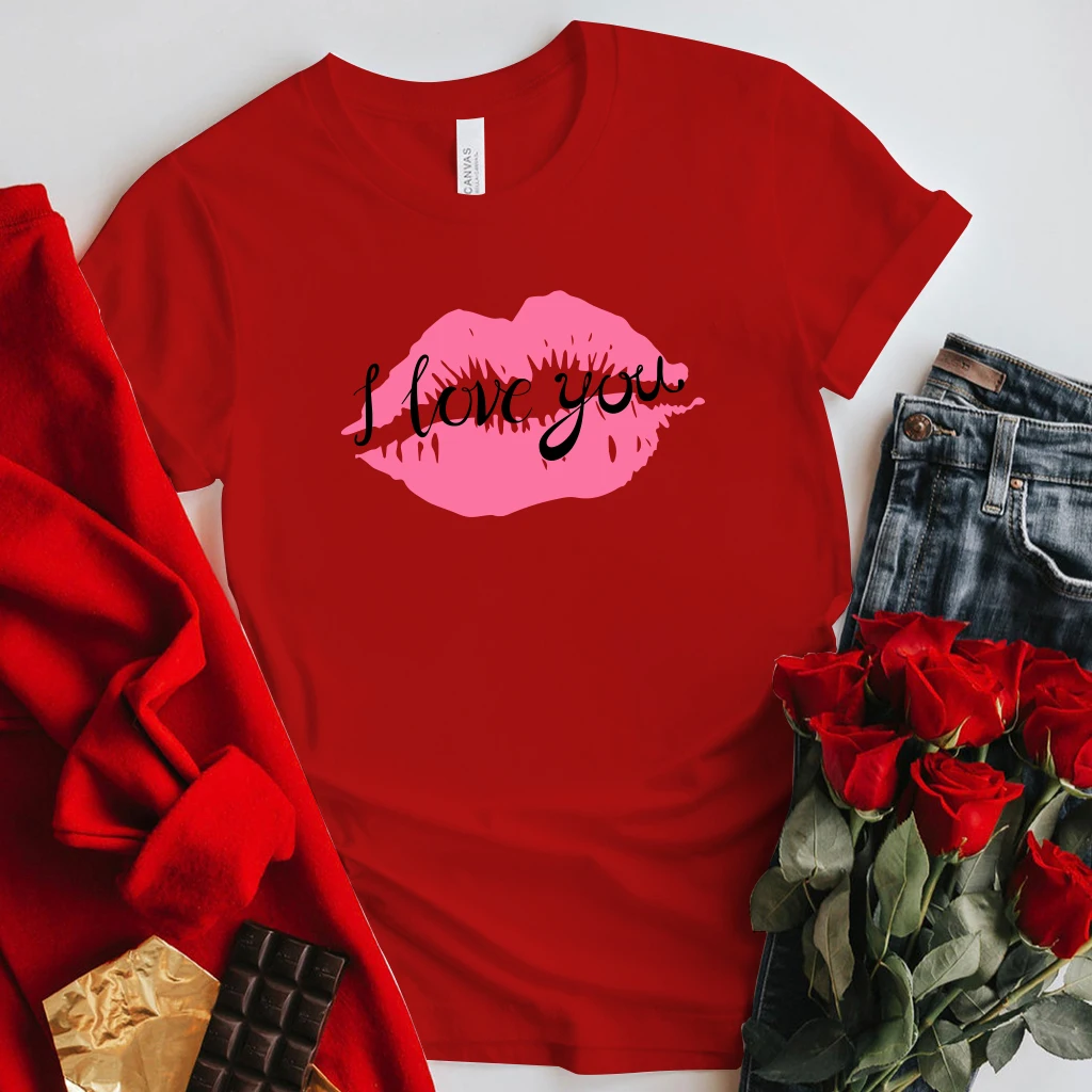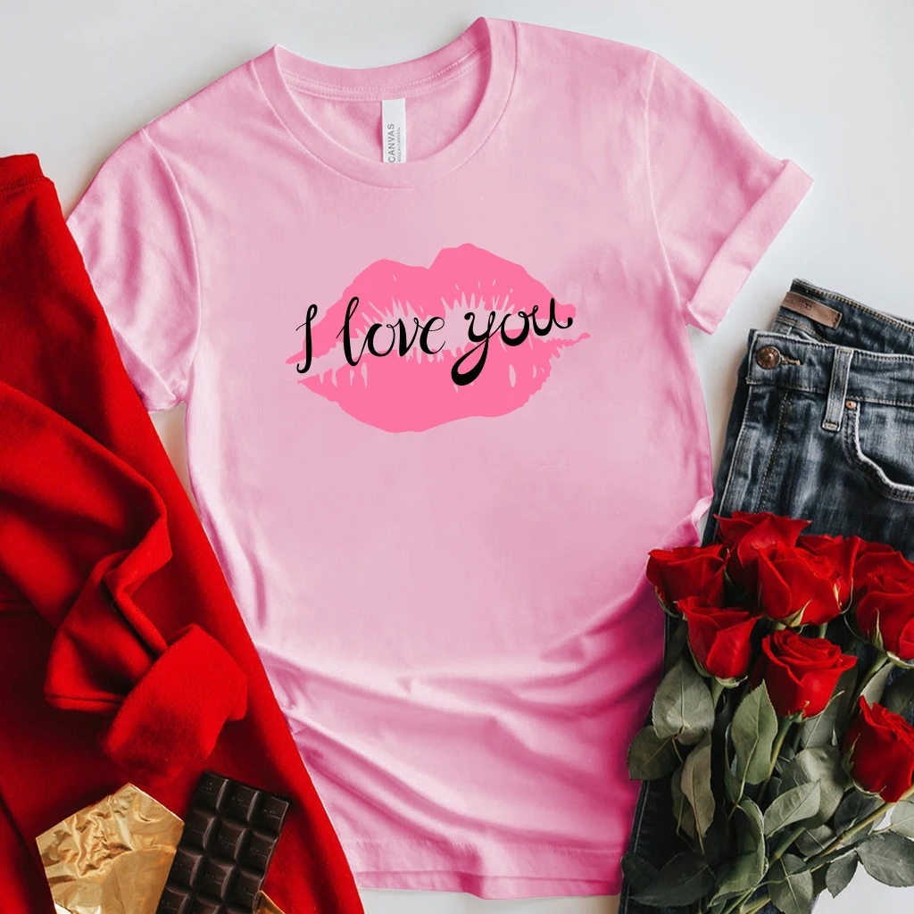 Женская футболка с принтом «I Love You» на День святого Валентина, милые розовые футболки с принтом губ для пар, женские футболки с короткими рукавами в стиле Харадзюку