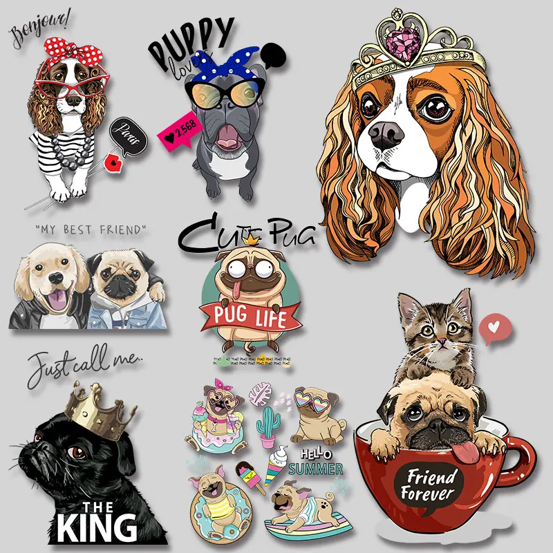 Наклейки с изображением красивых собак и животных, термопечать, виниловые наклейки для глажки тепла, украшение для курток, сумок, носков, подушек, одежды