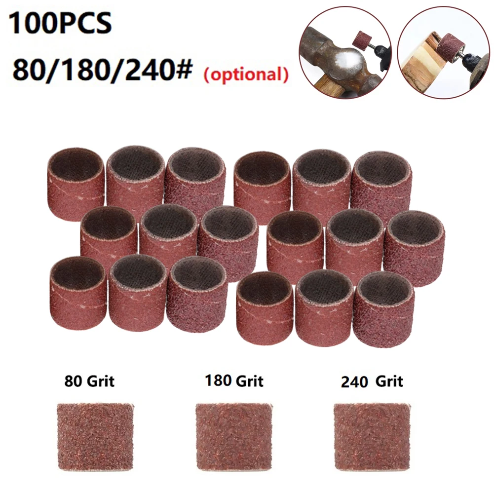 100 шт. набор шлифовальных барабанов #80 #180 #240 с шлифовальными ободками шлифовальные ленты для роторных инструментов абразивные инструменты