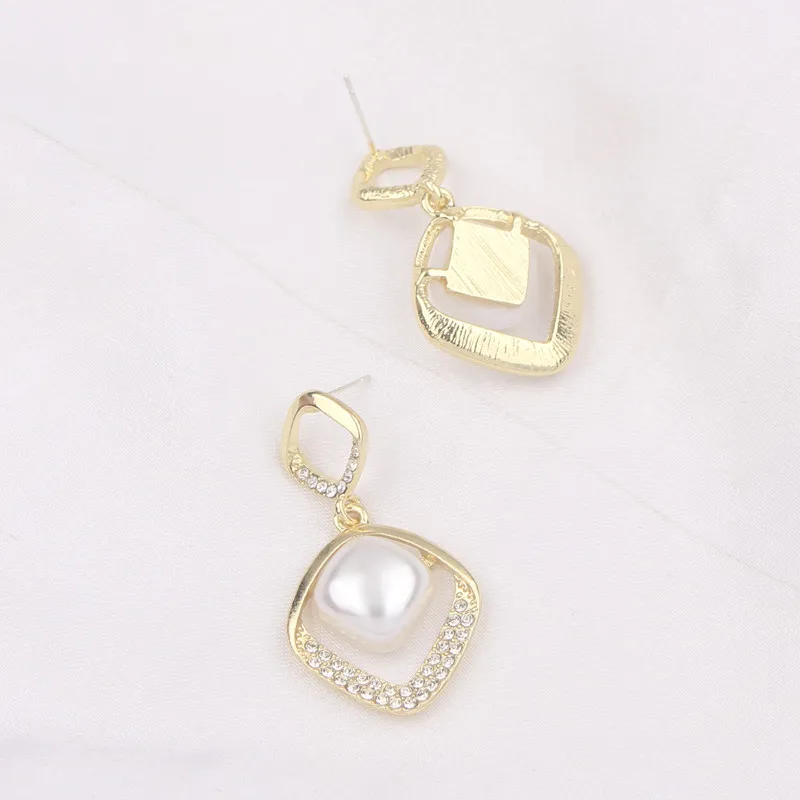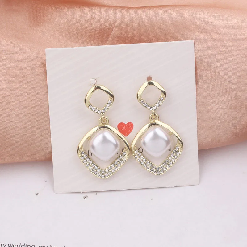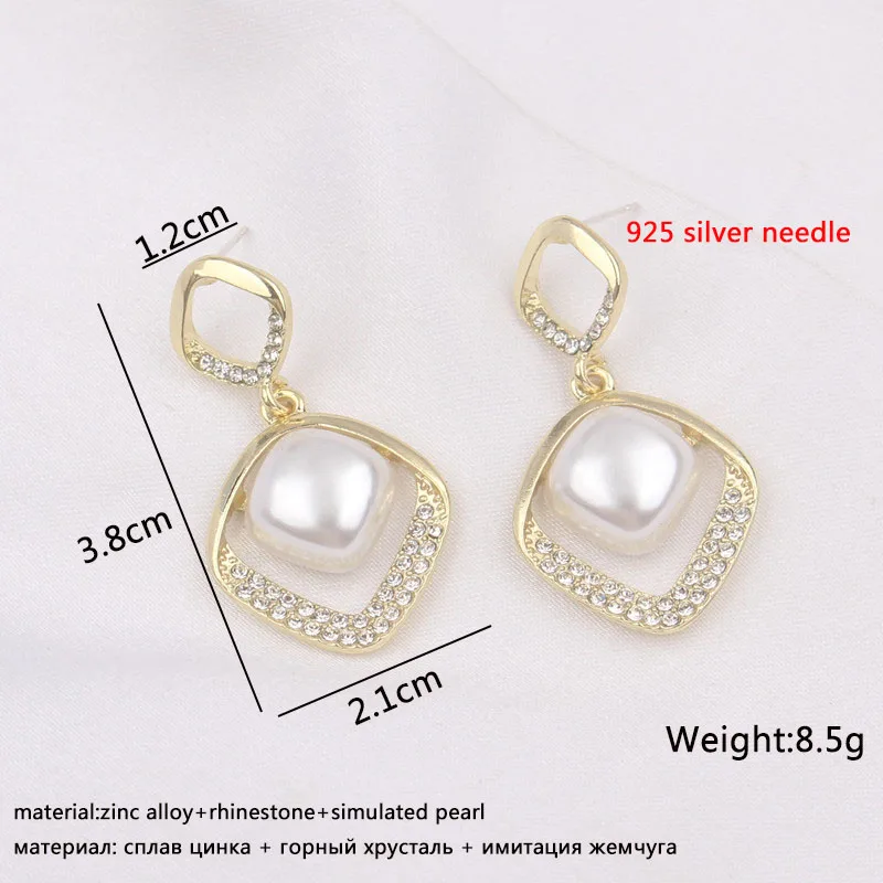 Серьги-подвески с жемчужинами женские, висячие ювелирные украшения с кристаллами, полые геометрические массивные аксессуары для ушей, необычные серьги