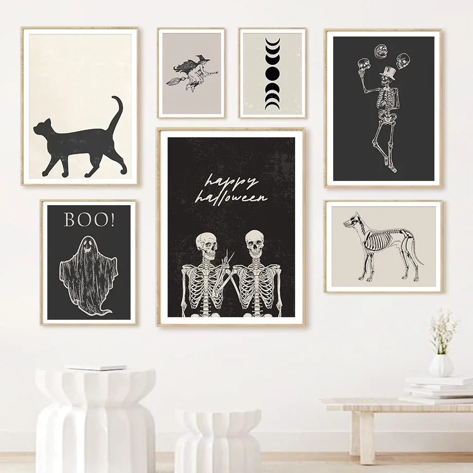 Настенная картина на Хэллоуин, скелет, Черный кот, ведьма, привиден...