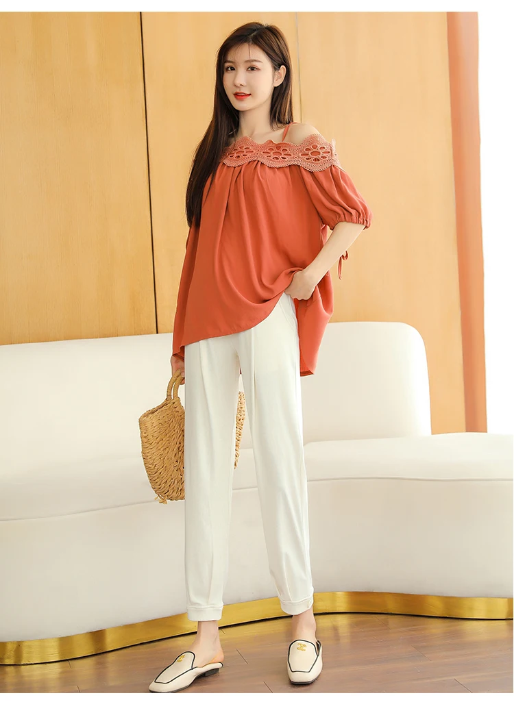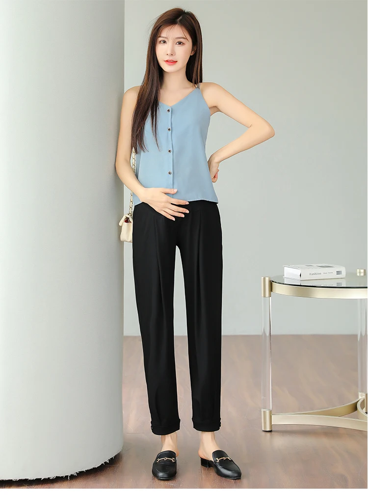 5502 #2022 весенние женские брюки, повседневные свободные прямые брюки с животом, Одежда для беременных женщин, шикарные, для беременных