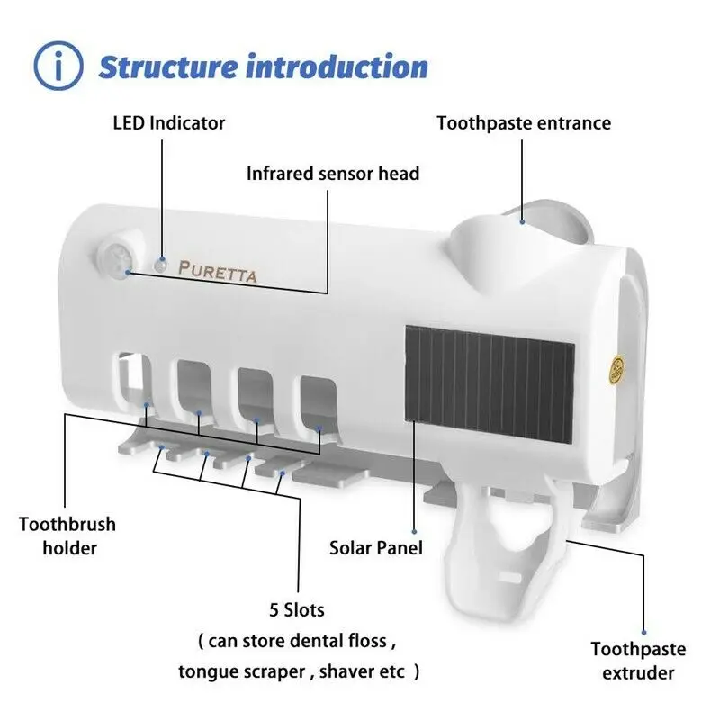 Домашний умный Стерилизатор зубных щеток с ультрафиолетовым излучением, USB-зарядка, держатель для зубных щеток, диспенсер для зубной пасты, стерилизационная стойка