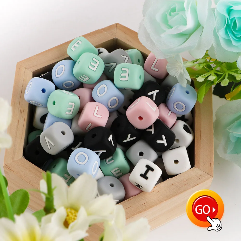 100 шт., силиконовые бусины с буквами, 12 мм