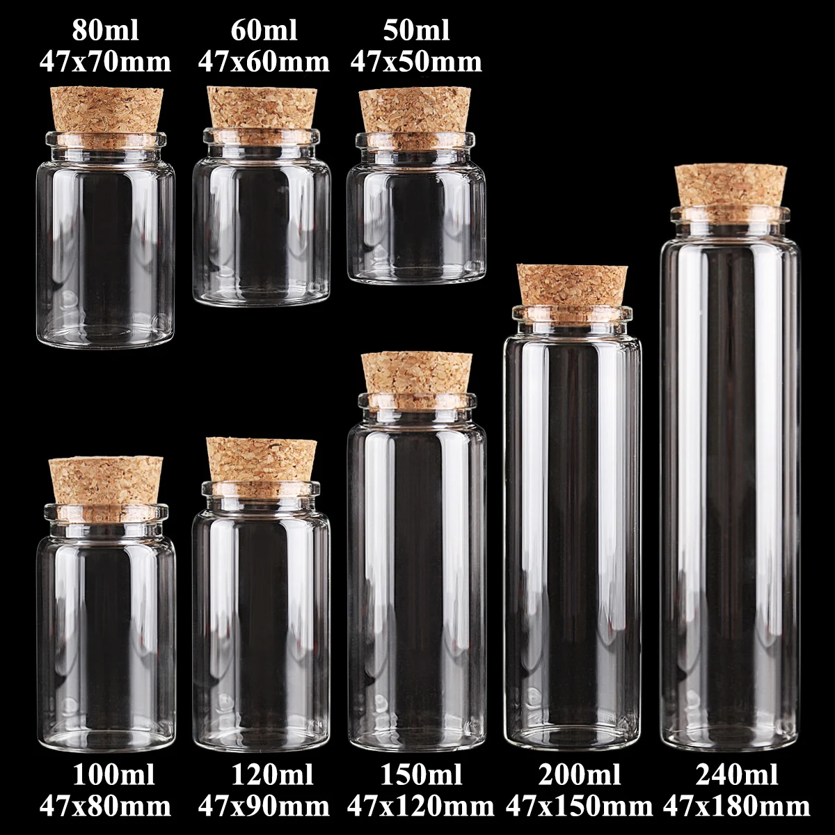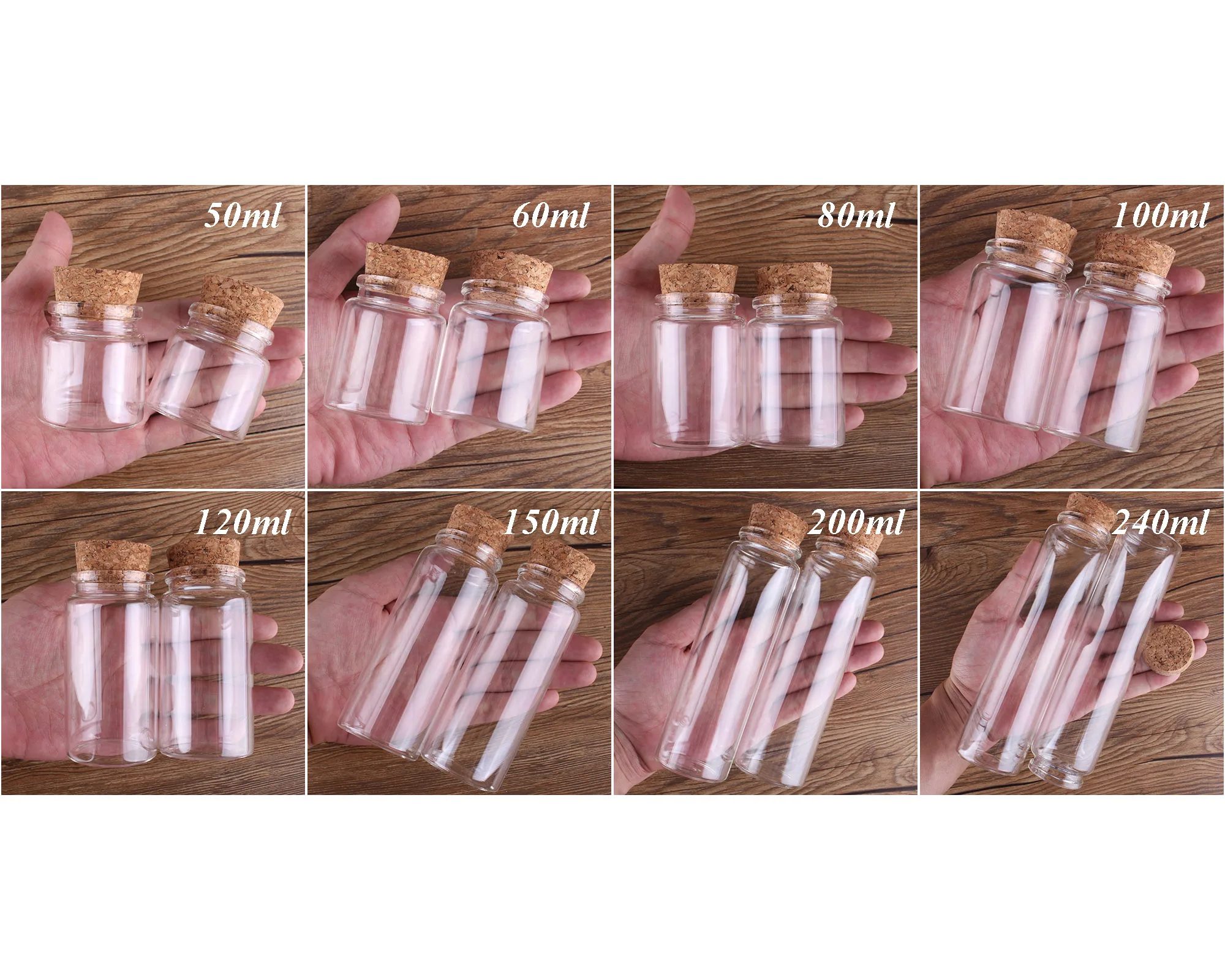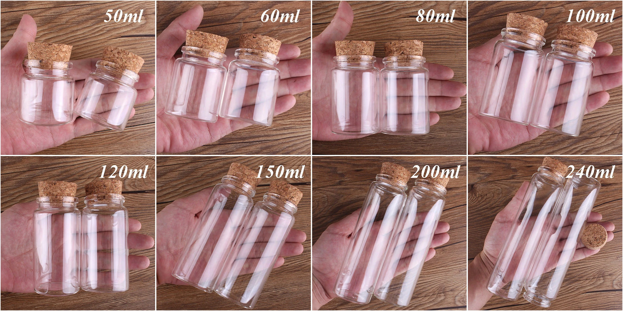 6 шт. 50 мл 60 мл 80 мл 100 мл 120 мл 150 мл 200 мл 240 мл стеклянные бутылки с пробковыми конфетами банки для свадебных сувениров 8 размеров U-pick
