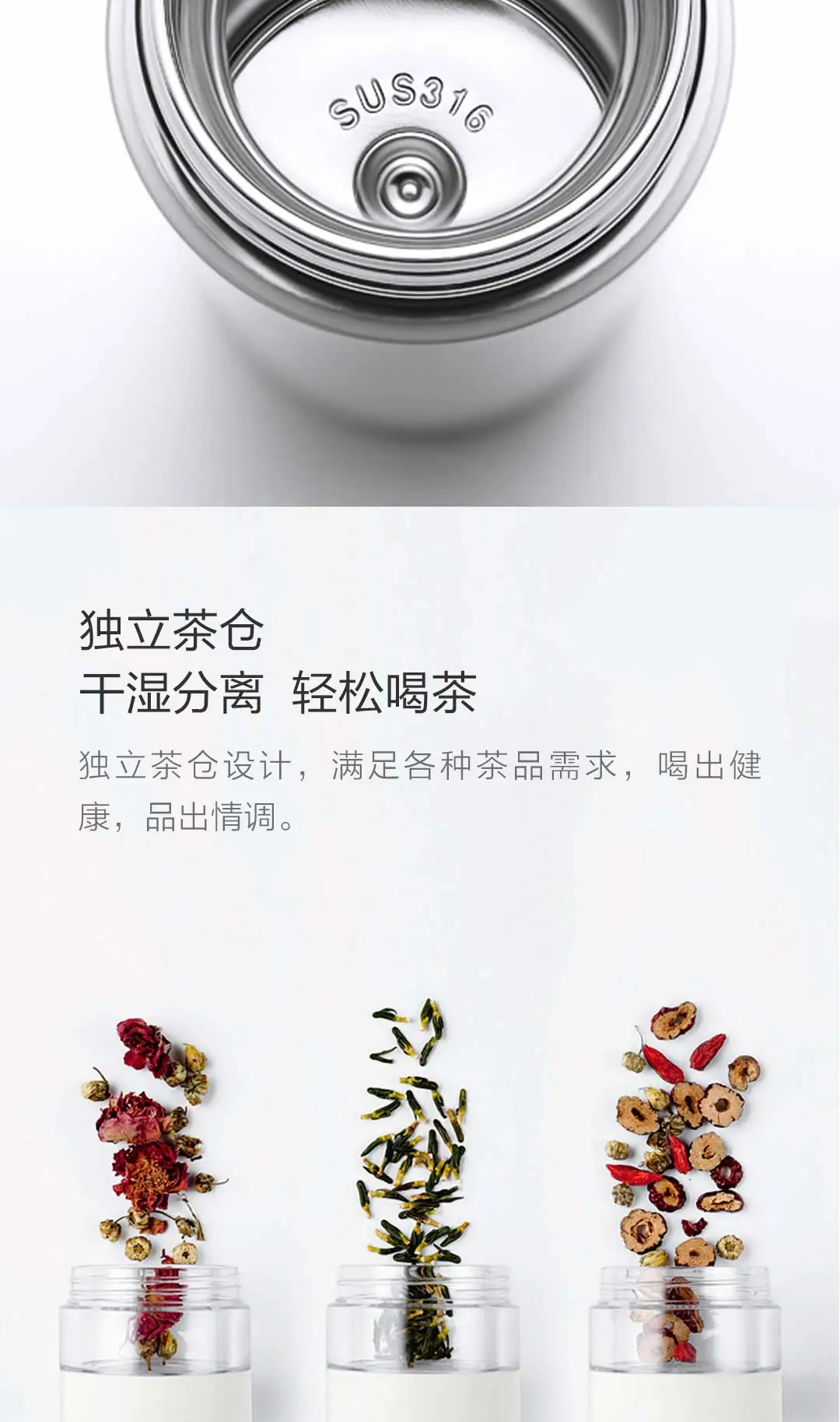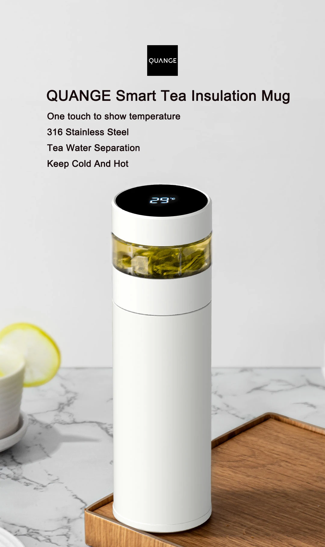 Xiaomi QUANGE Смарт чай изоляционная кружка H8133 одно касание, чтобы показать температуру 316 нержавеющая сталь чай разделение держать холодной и горячей