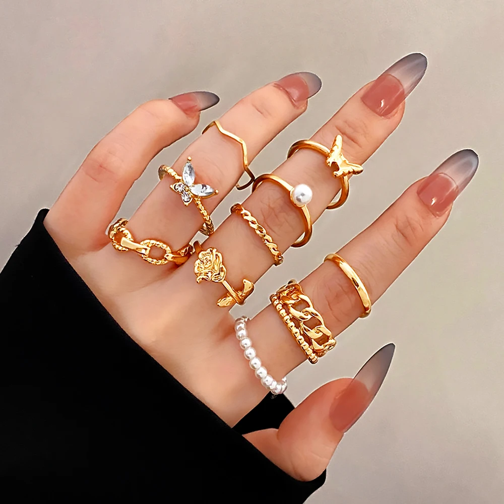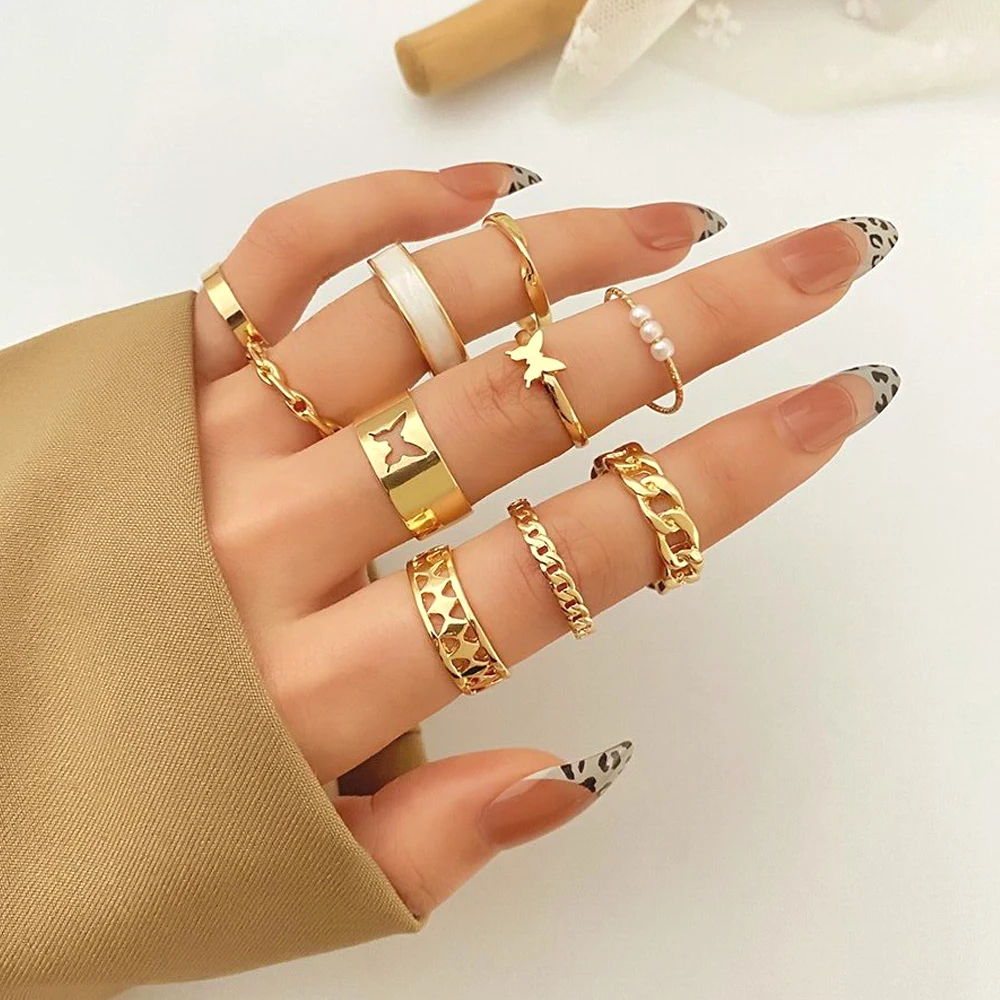 Набор Колец IFMIA золотистого цвета в богемном стиле с бабочкой для...