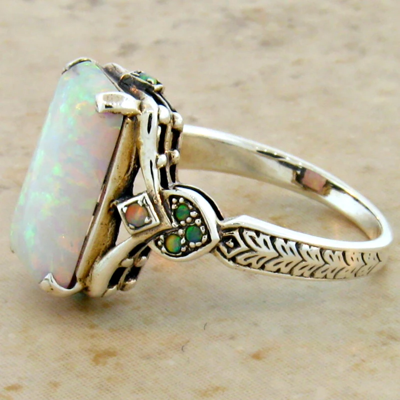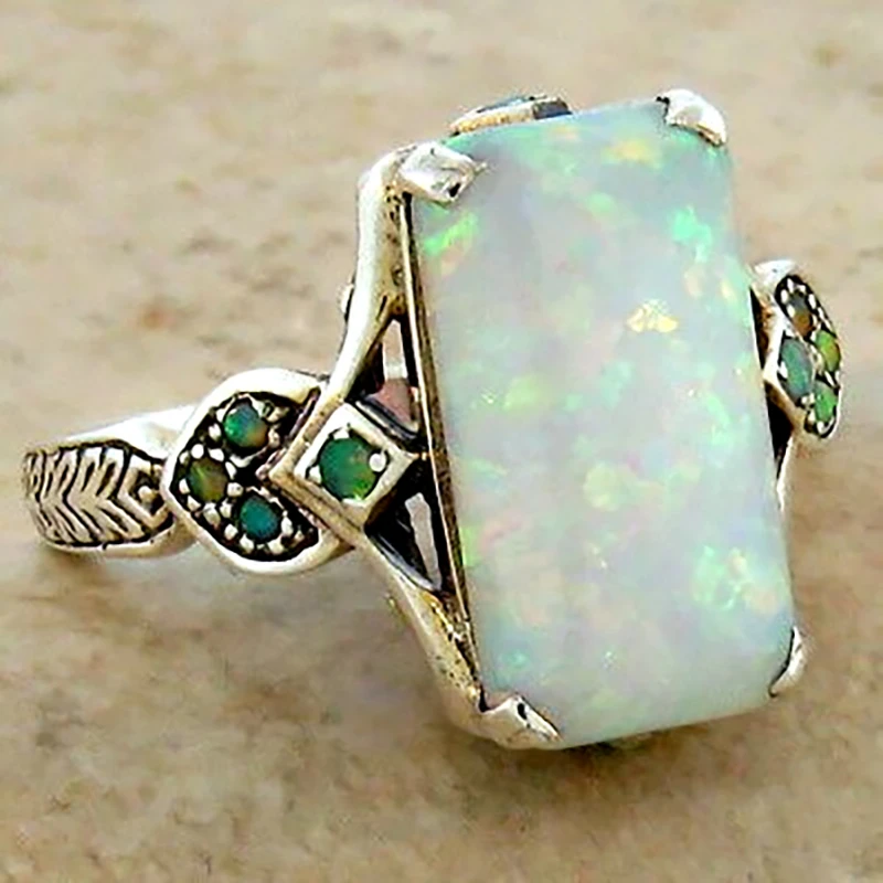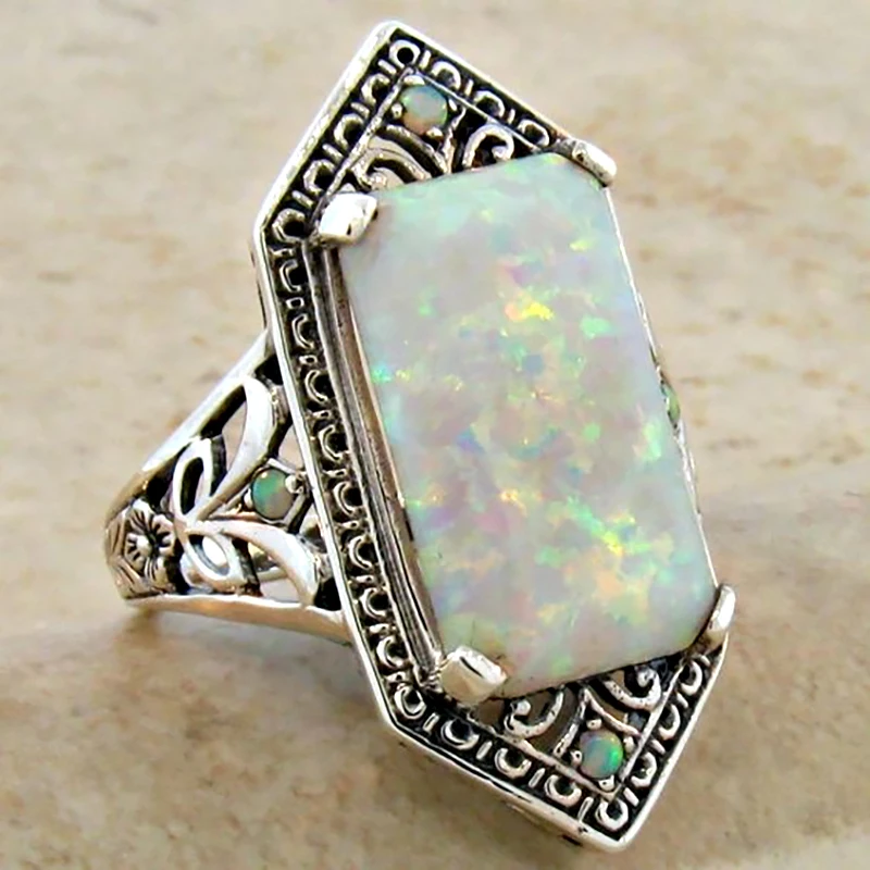 украшения 2021 бижутерия Инкрустированное серебряное кольцо с имитацией опала из циркония в стиле ретро, женское модное индивидуальное ювелирное изделие из сплава