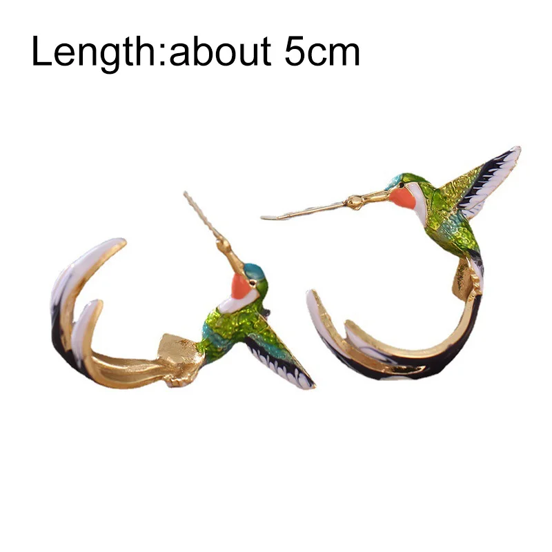 Серьги женские, с рисунком летающих Колибри, масляными красками