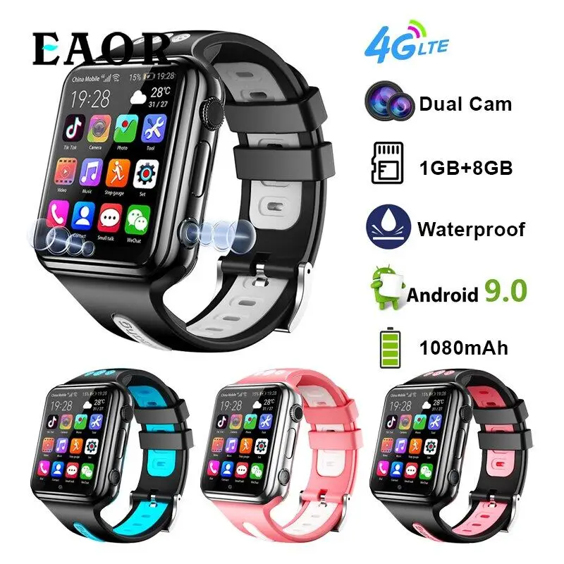EAOR Водонепроницаемые умные часы с двойной камерой 4G для детей, умные часы для студенческого телефона, 1 ГБ + 8 ГБ, Android 9,0, GPS, 1080 мАч, детские умные часы