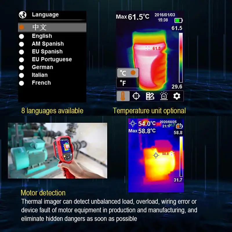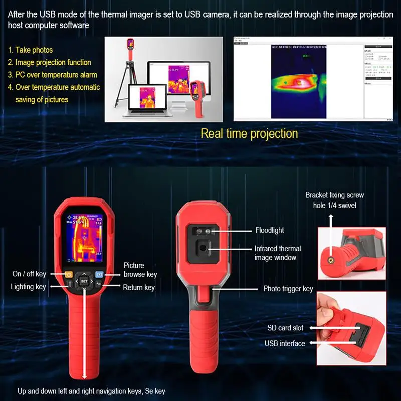 Режим измерения температуры: центральная точка, отслеживание высоких и низких температурХранение фотографий: 16 ГБ TF КартаСигнал тревоги высокой и низкой температуры: изображение, звуковой сигнал, светодиодный мигающий сигналСветодиодный светильникТри дизайна: IP54/два метра Предотвращение паденияДругие: инфракрасная камера, инфракрасная камера, тепловизионная камера android, тепловая камера для телефона, тепловизионная камера для телефонаПримечание:-Возможны небольшие погрешности в размере при ручном измерении.-Отклонение цвета может отличаться из-за различных настроек монитора, пожалуйста, поймите.Упаковочный лист