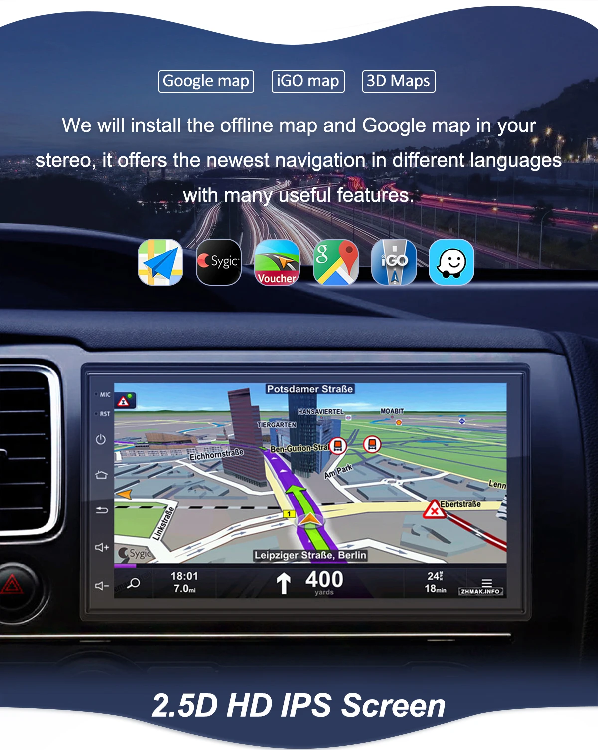 ● Поддержка оригинальной кнопки рулевого колеса автомобиля, функция обучения, через нее вы можете управлять функциями.● Для более точного определения местоположения в нашем списке приложений используется GPS спутниковая система позиционирования, вы можете получить доступ к различным онлайн-картам, таким как IGO, Sygic