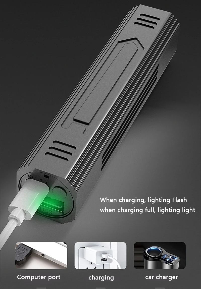 Высококачественный светодиодный водонепроницаемый фонарик с зарядкой от Usb, фонарик со встроенным аккумулятором 18650 для кемпинга