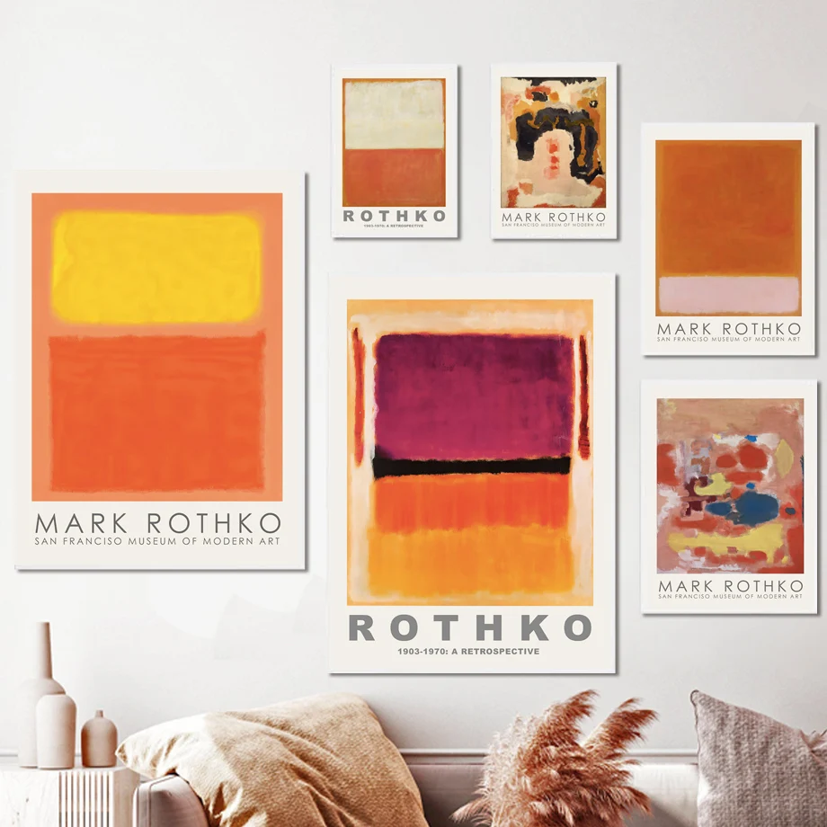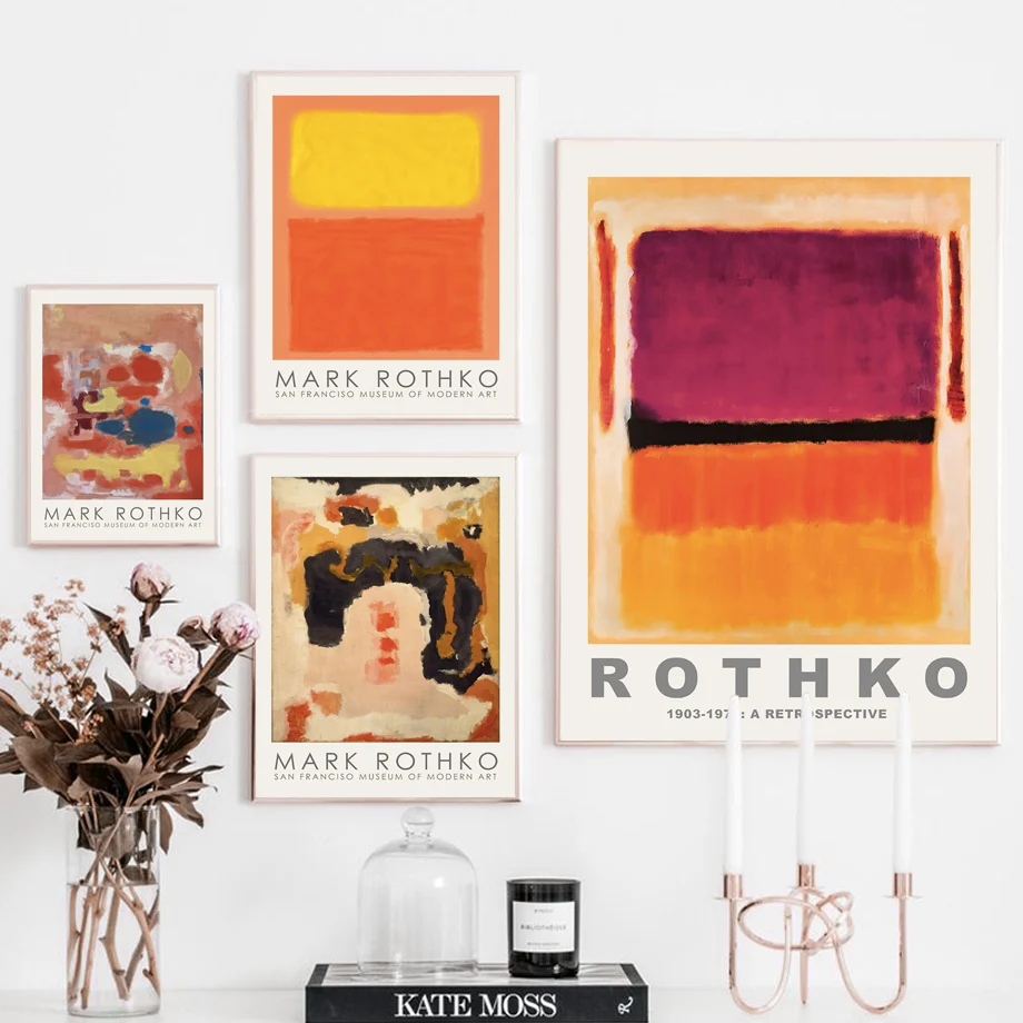 Модульная Настенная картина Mark Rothko с цветными блоками, настенные постеры и принты в скандинавском стиле для гостиной, минималистичное украшение