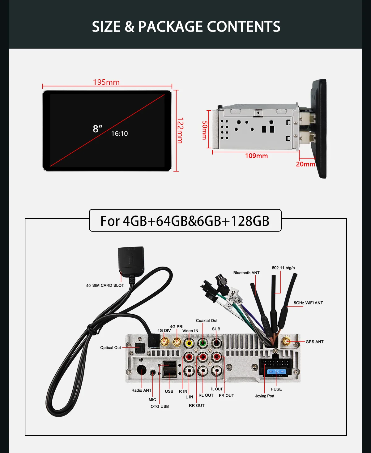 Автомагнитола 1Din, универсальная магнитола на Android, 8 дюймов, 6 + 128 ГБ, 1280*800