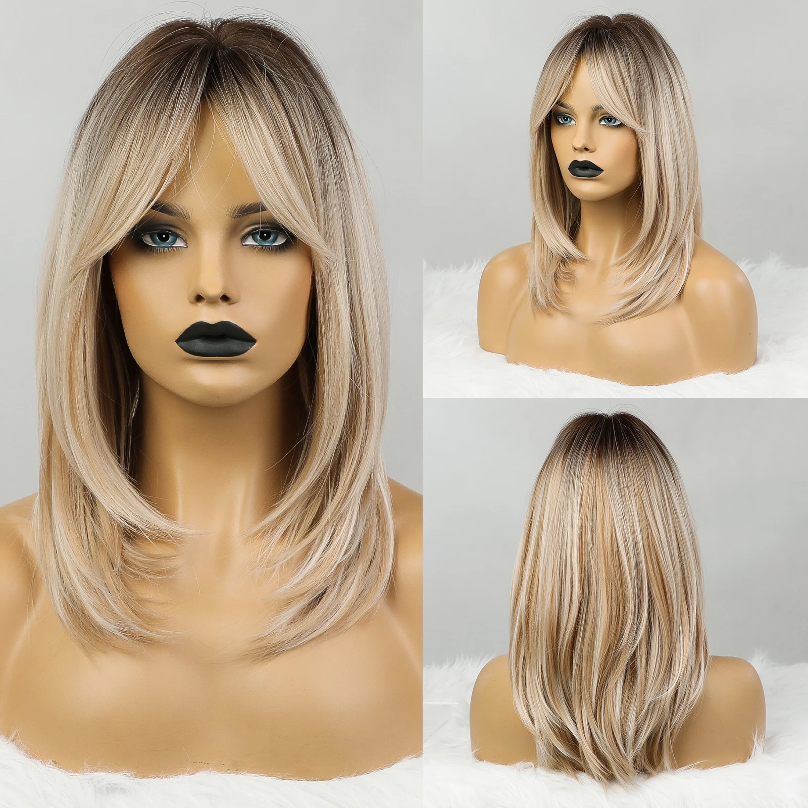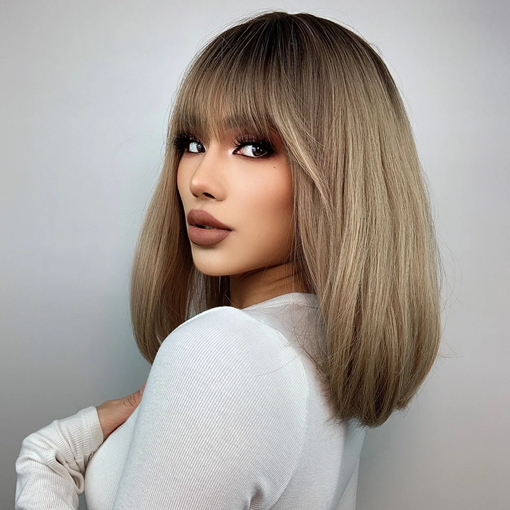 Длинные прямые парики с эффектом омбре, коричневый, светлый синтетический парик с челкой для косплея, натуральный термостойкий парик для женщин