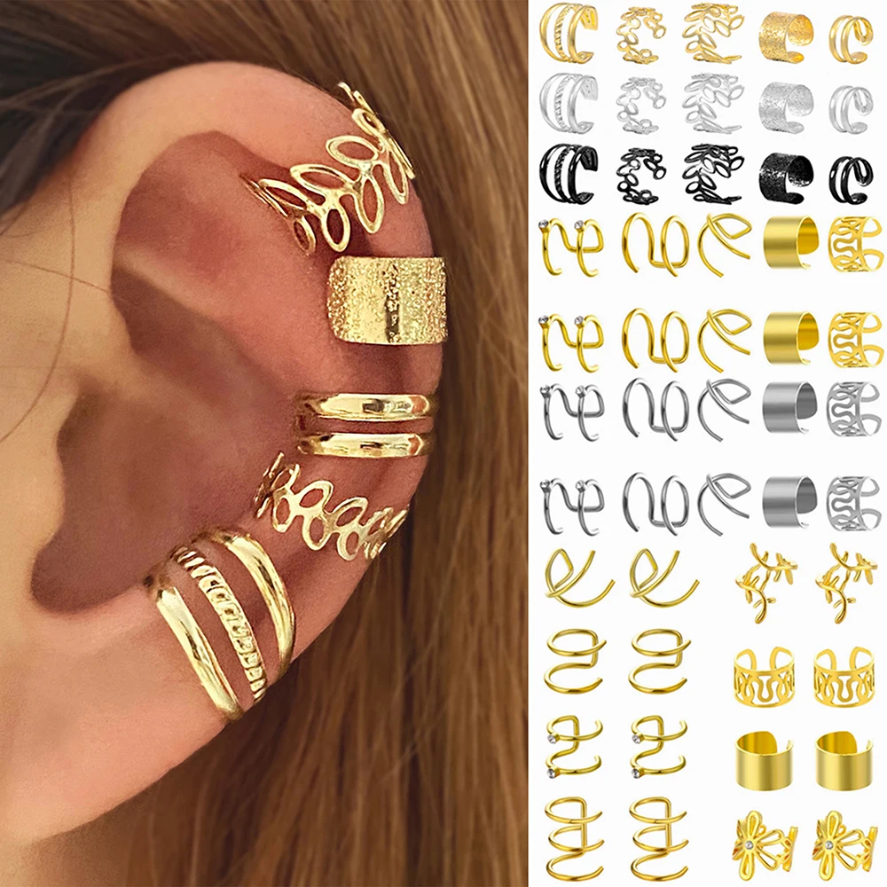 KISSWIFE Кафф для ушей с золотыми листьями, черные клипсы для ушей без пирсинга, серьги-клипсы для поддельного хряща для женщин и мужчин, оптовая продажа ювелирных изделий