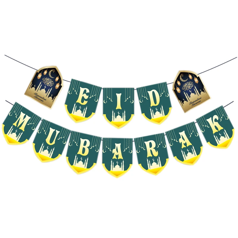 Баннер ИД Мубарак, 1 комплект, тканевая бумага флаг буквы и баннеры...