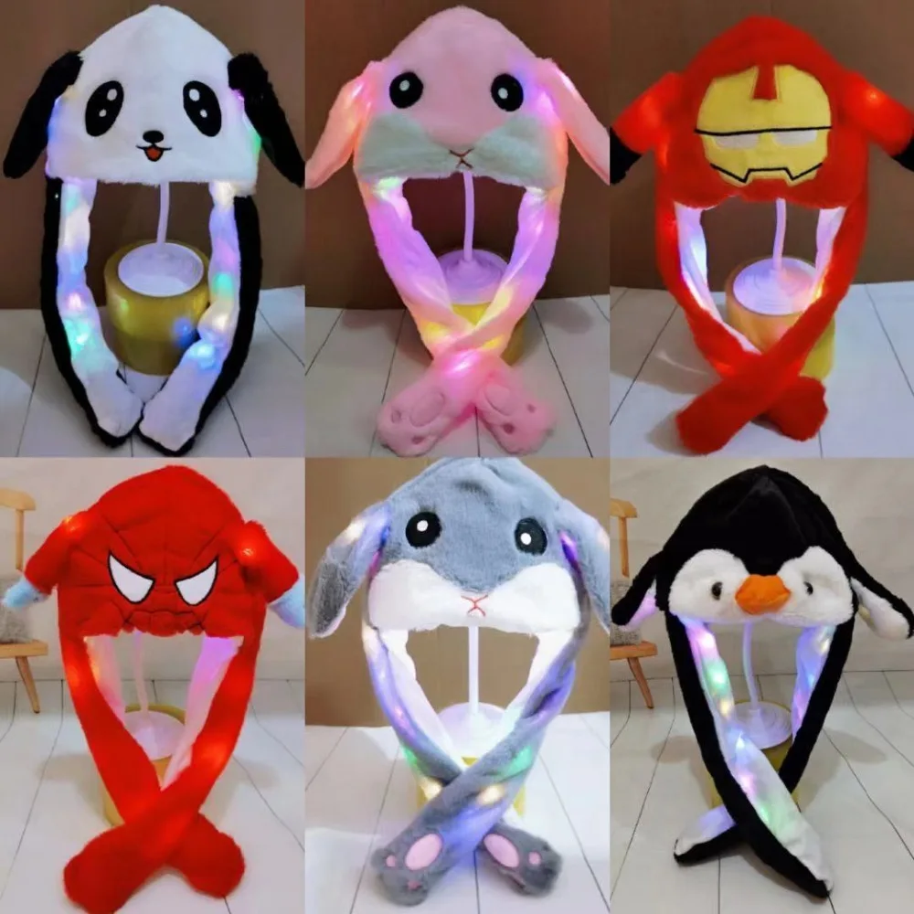 Детская светящаяся шляпа с заячьими ушками, прыгающая шапка с плюшевой вспышкой, детский подарок для взрослых, светильник, подушка безопасности, светящаяся шапка, игрушки