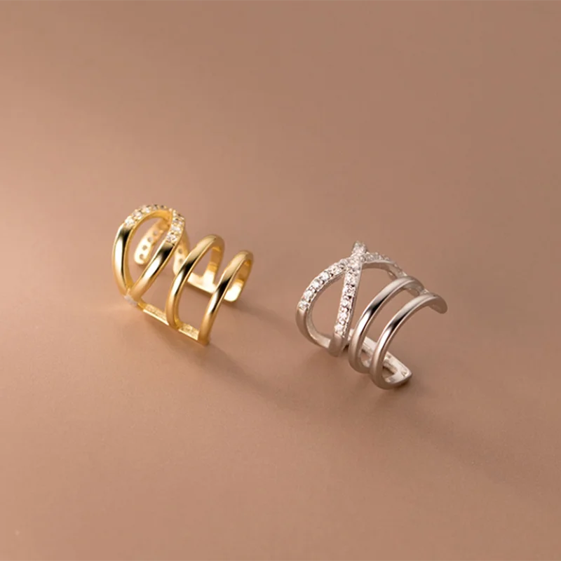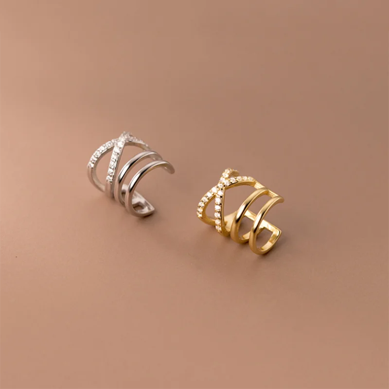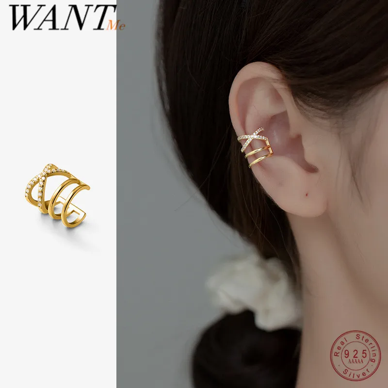 WANTME блестящие двойные Клипсы-кресты из стерлингового серебра 925 пробы, 1 шт., линия для ушей без пирсинга, Женские Ювелирные изделия, каффы для ушей, аксессуары