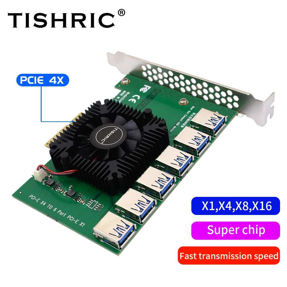Плата расширения TISHRIC Pci Express, усилитель Pcie 4x на 6 Usb 3,...