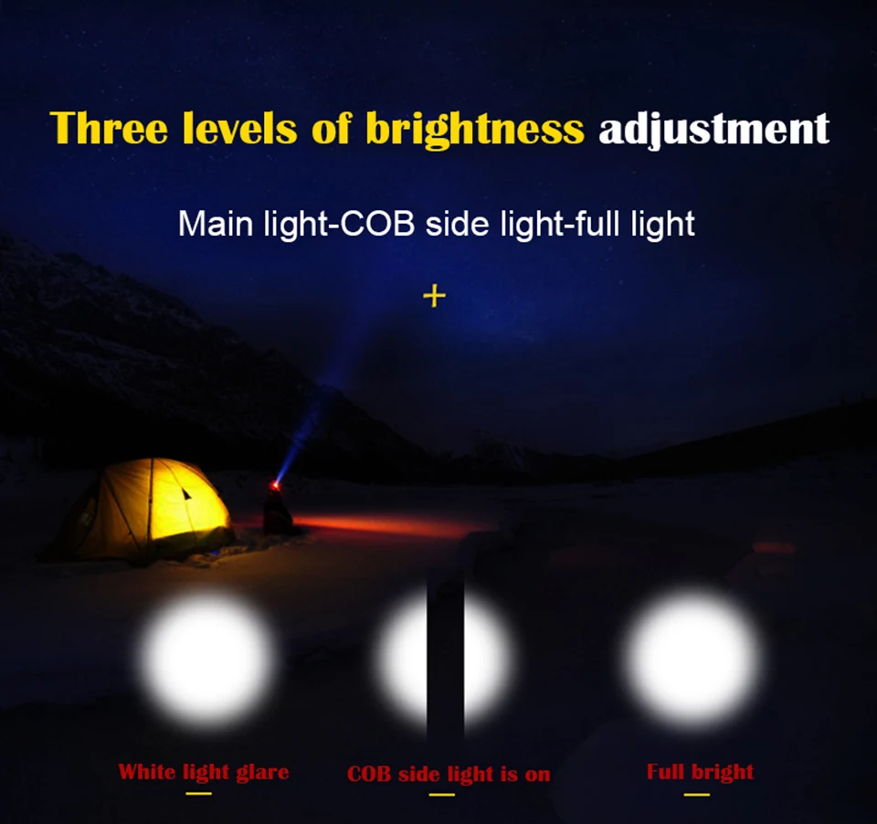 1. Высокое качество 1 * XPE + 2 * cob светодиодный чип, яркий, как прожектор.2. Увеличение/уменьшение, регулируемый светильник.3. Поверните головку на 180 градусов для регулировки угла освещения по мере необходимости.4. С зарядным интерфейсом, зарядка более удобна.5. Водонепроницаемость-Водонепроницаемость даже в дождливые дни (за исключением Дайвинга).6. Подходит для бега, кемпинга, бега, рыбалки, велоспорта, чтения, охоты и пеших прогулок.