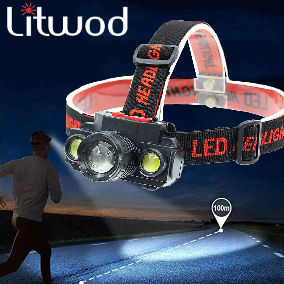 Litwod Zoomable XP-E Q5 COB светодиодный налобный фонарь с перезар...
