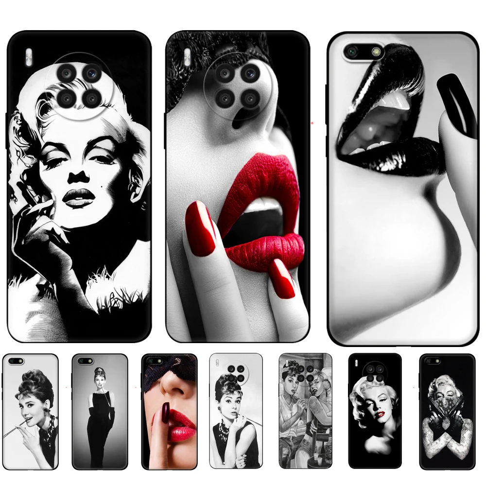 Черный чехол из ТПУ для Huawei Honor 50 Lite PRO 20 10 10i 20S 30S 30 7A 7s 7C Обложка Одри Хепбёрн Татуированная Мэрилин Монро