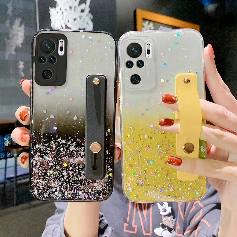 Блестящий Прозрачный чехол для телефона Xiaomi Mi POCO X3 NFC 8 Pro Redmi Note 10 9 Pro 10lite Защита объектива ремешок на запястье подставка мягкий чехол