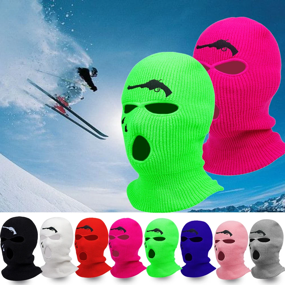 Вязаная Лыжная маска Балаклава с 3 отверстиями, вязаная Полнолицевая маска, ветрозащитная теплая маска для шеи, для езды на велосипеде, лыжах, для мужчин, женщин и мужчин